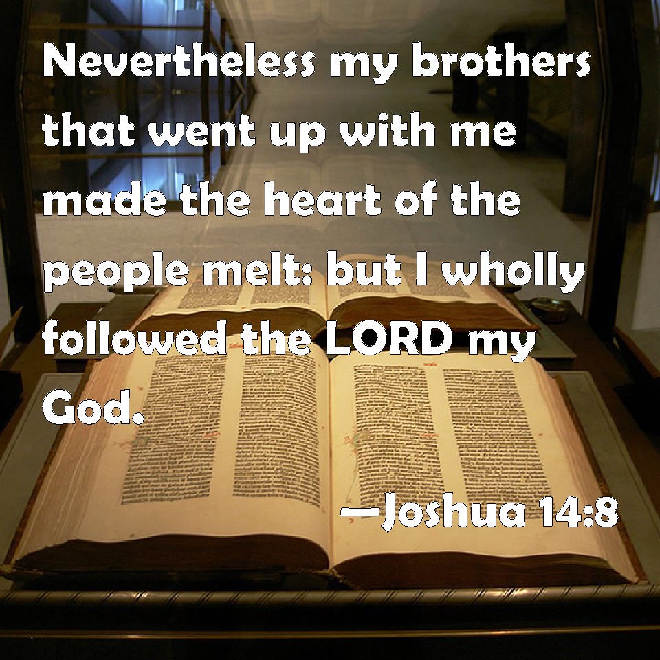 Joshua 14:8 Nevertheless my brothers that went up with me made the heart of the people melt: but I wholly followed the LORD my God.
