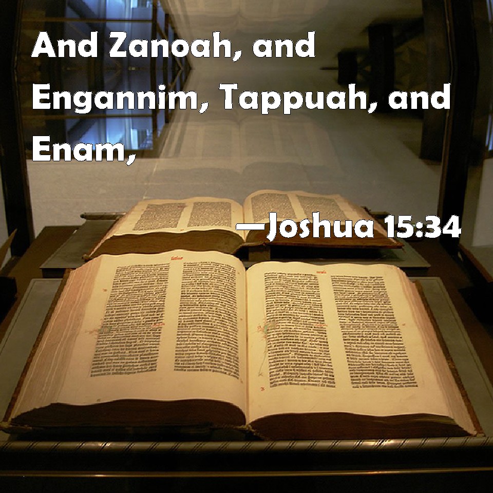 Choose a Background Joshua 15:34 And Zanoah, and Engannim, Tappuah, and Enam, KJV: And Zanoah, and Engannim, Tappuah, and Enam, DRB: And Zanoe and Engannim and Taphua and Enaim, DBT: and Zanoah, and En-gannim, Tappuah and Enam, ERV: and Zanoah, and En-gannim, Tappuah, and Enam; WBT: And Zanoah, and En-gannim, Tappuah, and Enam, WEB: Zanoah, En Gannim, Tappuah, Enam, YLT: and Zanoah, and En-Gannim, Tappuah, and Enam,Links Joshua 15:34 NIV • Joshua 15:34 NLT • Joshua 15:34 ESV • Joshua 15:34 NASB • Joshua 15:34 KJV • Joshua 15:34 Interlinear • Joshua 15:34 Commentaries • Joshua 15:34 Parallel Texts • Joshua 15:34 Bible Apps • Joshua 15:34 Parallel • Bible Hub |