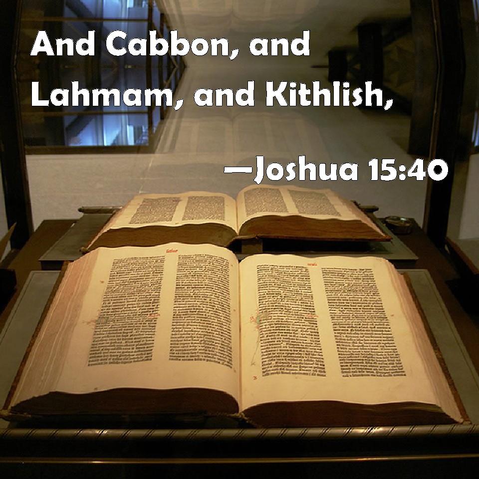 Choose a Background Joshua 15:40 And Cabbon, and Lahmam, and Kithlish, KJV: And Cabbon, and Lahmam, and Kithlish, DRB: Chebbon and Leheman and Cethlis, DBT: and Cabbon, and Lahmas, and Chithlish, ERV: and Cabbon, and Lahmam, and Chithlish; WBT: And Cabbon, and Lahman, and Kithlish, WEB: Cabbon, Lahmam, Chitlish, YLT: and Cabbon, and Lahmam, and Kithlish,Links Joshua 15:40 NIV • Joshua 15:40 NLT • Joshua 15:40 ESV • Joshua 15:40 NASB • Joshua 15:40 KJV • Joshua 15:40 Interlinear • Joshua 15:40 Commentaries • Joshua 15:40 Parallel Texts • Joshua 15:40 Bible Apps • Joshua 15:40 Parallel • Bible Hub |