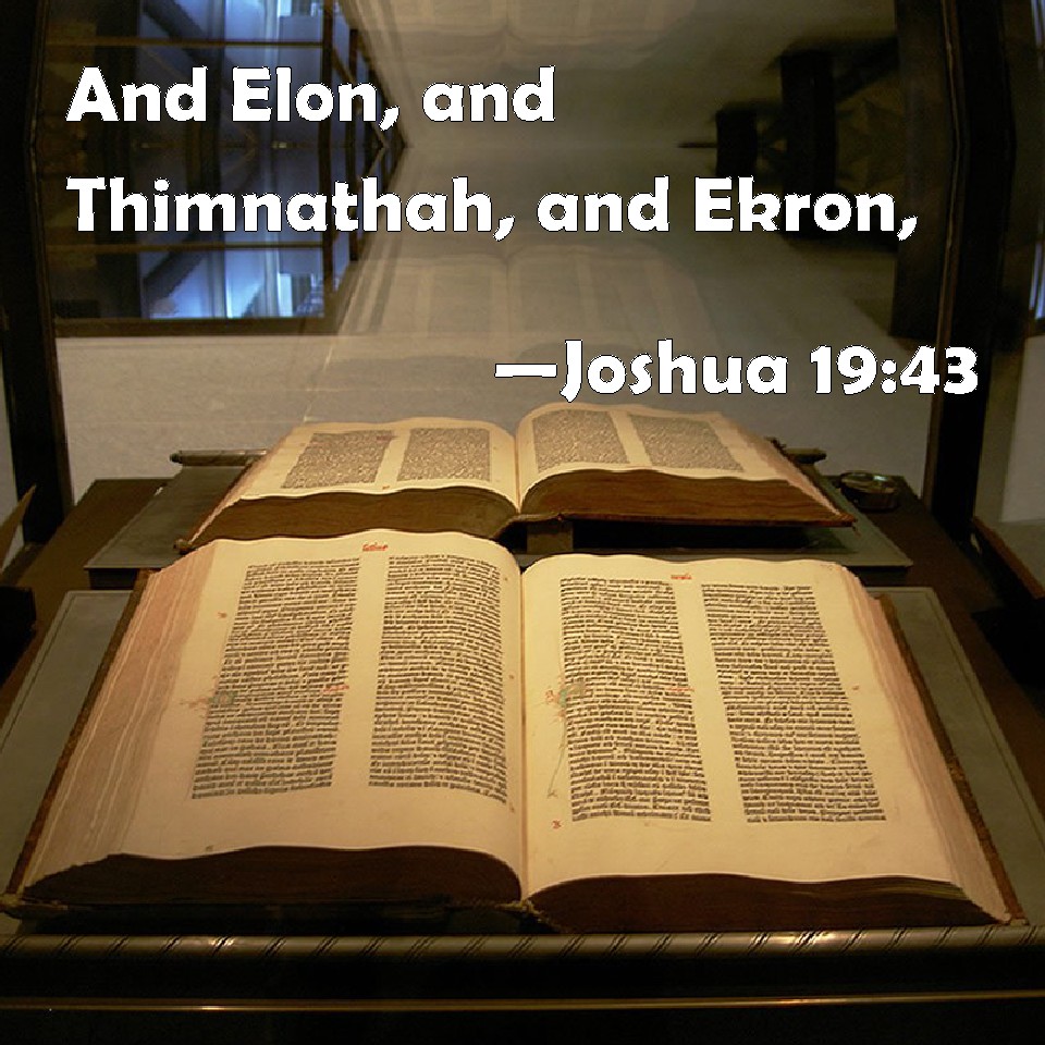 Choose a Background Joshua 19:43 And Elon, and Thimnathah, and Ekron, KJV: And Elon, and Thimnathah, and Ekron, DRB: Elon and Themna and Acron, DBT: and Elon, and Timnathah, and Ekron, ERV: and Elon, and Timnah, and Ekron; WBT: And Elon, and Thimnathah, and Ekron, WEB: Elon, Timnah, Ekron, YLT: and Elon, and Thimnathah, and Ekron,Links Joshua 19:43 NIV • Joshua 19:43 NLT • Joshua 19:43 ESV • Joshua 19:43 NASB • Joshua 19:43 KJV • Joshua 19:43 Interlinear • Joshua 19:43 Commentaries • Joshua 19:43 Parallel Texts • Joshua 19:43 Bible Apps • Joshua 19:43 Parallel • Bible Hub |