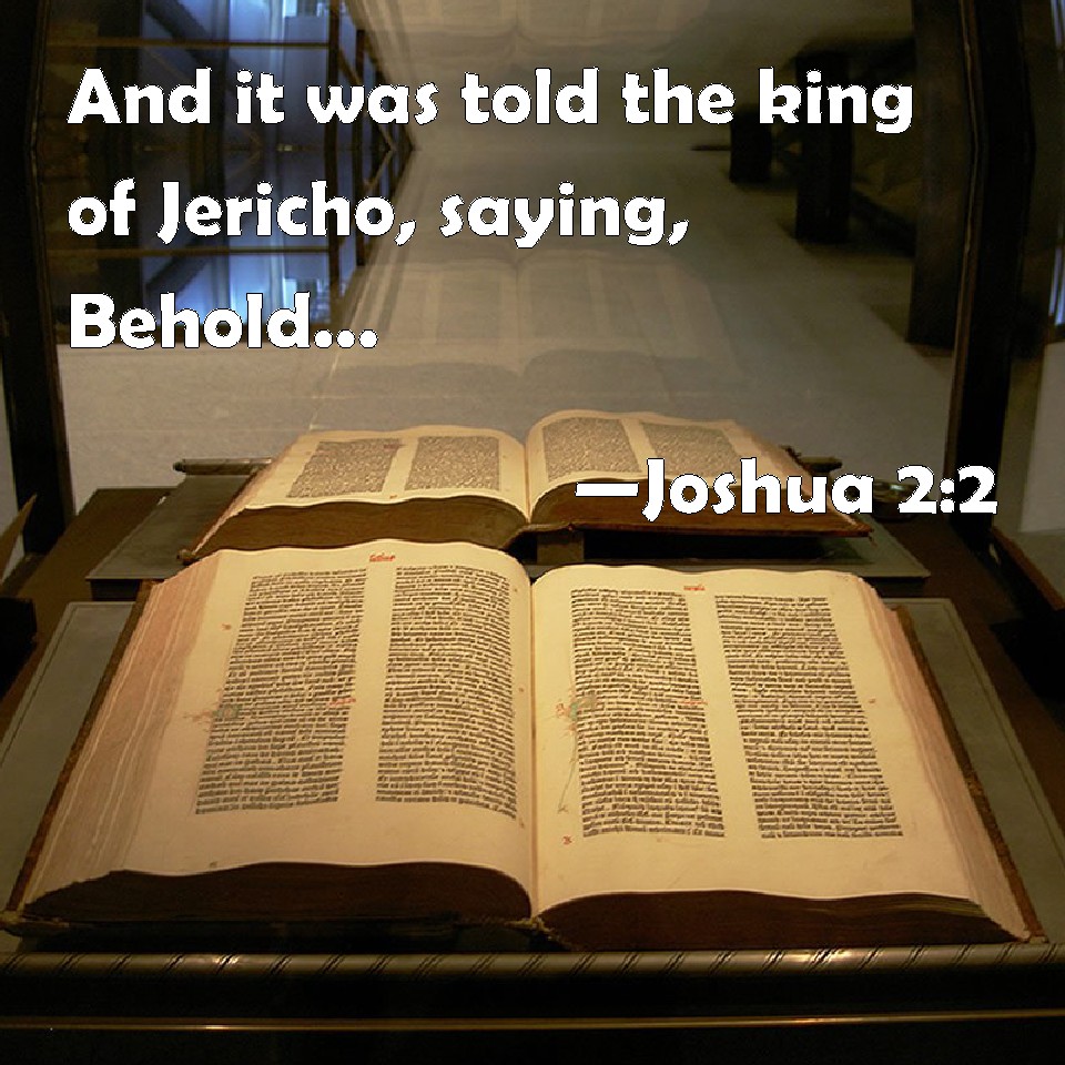 Choose a Background Joshua 2:2 And it was told the king of Jericho, saying, Behold, there came men in here to night of the children of Israel to search out the country. KJV: And it was told the king of Jericho, saying, Behold, there came men in hither to night of the children of Israel to search out the country. DRB: And it was told the king of Jericho, and was said : Behold there are men come in hither, by night, of the children of Israel, to spy the land. DBT: And it was told the king of Jericho, saying, Behold, men have come hither to-night from the children of Israel to search out the land. ERV: And it was told the king of Jericho, saying, Behold, there came men in hither to-night of the children of Israel to search out the land. WBT: And it was told the king of Jericho, saying, Behold, there came men in hither to-night of the children of Israel, to search out the country. WEB: The king of Jericho was told, "Behold, men of the children of Israel came in here tonight to spy out the land." YLT: And it is told to the king of Jericho, saying, 'Lo, men have come in hither to-night, from the sons of Israel, to search the land.Links Joshua 2:2 NIV • Joshua 2:2 NLT • Joshua 2:2 ESV • Joshua 2:2 NASB • Joshua 2:2 KJV • Joshua 2:2 Interlinear • Joshua 2:2 Commentaries • Joshua 2:2 Parallel Texts • Joshua 2:2 Bible Apps • Joshua 2:2 Parallel • Bible Hub |