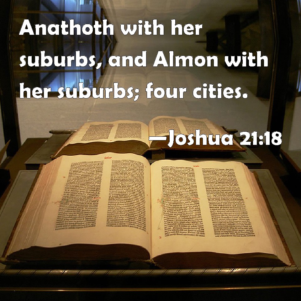 Joshua 21:18 Anathoth with her suburbs, and Almon with her suburbs; four cities.