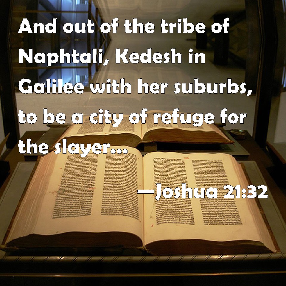 Choose a Background Joshua 21:32 And out of the tribe of Naphtali, Kedesh in Galilee with her suburbs, to be a city of refuge for the slayer; and Hammothdor with her suburbs, and Kartan with her suburbs; three cities. KJV: And out of the tribe of Naphtali, Kedesh in Galilee with her suburbs, to be a city of refuge for the slayer; and Hammothdor with her suburbs, and Kartan with her suburbs; three cities. DRB: Of the tribe also of Nephtali, Cedes in Galilee, one of the cities of refuge: and Hammoth Dor, and Carthan, with their suburbs, three cities. DBT: and out of the tribe of Naphtali, the city of refuge for the slayer, Kedesh in Galilee, and its suburbs; and Hammoth-Dor and its suburbs, and Kartan and its suburbs: three cities. ERV: And out of the tribe of Naphtali, Kedesh in Galilee with her suburbs, the city of refuge for the manslayer, and Hammoth-dor with her suburbs, and Kartan with her suburbs; three cities. WBT: And out of the tribe of Naphtali, Kedesh in Galilee with its suburbs, to be a city of refuge for the slayer; and Hammoth-dor with its suburbs, and Kartan with its suburbs; three cities. WEB: Out of the tribe of Naphtali, Kedesh in Galilee with its suburbs, the city of refuge for the manslayer, Hammothdor with its suburbs, and Kartan with its suburbs; three cities. YLT: And out of the tribe of Naphtali, the city of refuge for the man-slayer, Kedesh in Galilee and its suburbs, and Hammoth-Dor and its suburbs, and Kartan and its suburbs — three cities;Links Joshua 21:32 NIV • Joshua 21:32 NLT • Joshua 21:32 ESV • Joshua 21:32 NASB • Joshua 21:32 KJV • Joshua 21:32 Interlinear • Joshua 21:32 Commentaries • Joshua 21:32 Parallel Texts • Joshua 21:32 Bible Apps • Joshua 21:32 Parallel • Bible Hub |