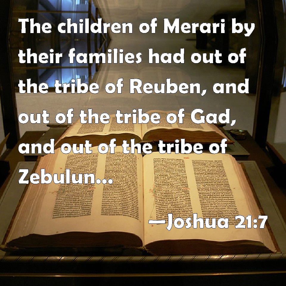 Choose a Background Joshua 21:7 The children of Merari by their families had out of the tribe of Reuben, and out of the tribe of Gad, and out of the tribe of Zebulun, twelve cities. KJV: The children of Merari by their families had out of the tribe of Reuben, and out of the tribe of Gad, and out of the tribe of Zebulun, twelve cities. DRB: And to the sons of Merari by their kindreds, of the tribes of Ruben and or Cad and of Zabulon, twelve cities. DBT: The children of Merari according to their families had by lot out of the tribe of Reuben, and out of the tribe of Gad, and out of the tribe of Zebulun, twelve cities. ERV: The children of Merari according to their families had out of the tribe of Reuben, and out of the tribe of Gad, and out of the tribe of Zebulun, twelve cities. WBT: The children of Merari by their families had out of the tribe of Reuben, and out of the tribe of Gad, and out of the tribe of Zebulun, twelve cities. WEB: The children of Merari according to their families had twelve cities out of the tribe of Reuben, out of the tribe of Gad, and out of the tribe of Zebulun. YLT: For the sons of Merari, for their families, are, out of the tribe of Reuben, and out of the tribe of Gad, and out of the tribe of Zebulun, twelve cities.Links Joshua 21:7 NIV • Joshua 21:7 NLT • Joshua 21:7 ESV • Joshua 21:7 NASB • Joshua 21:7 KJV • Joshua 21:7 Interlinear • Joshua 21:7 Commentaries • Joshua 21:7 Parallel Texts • Joshua 21:7 Bible Apps • Joshua 21:7 Parallel • Bible Hub |