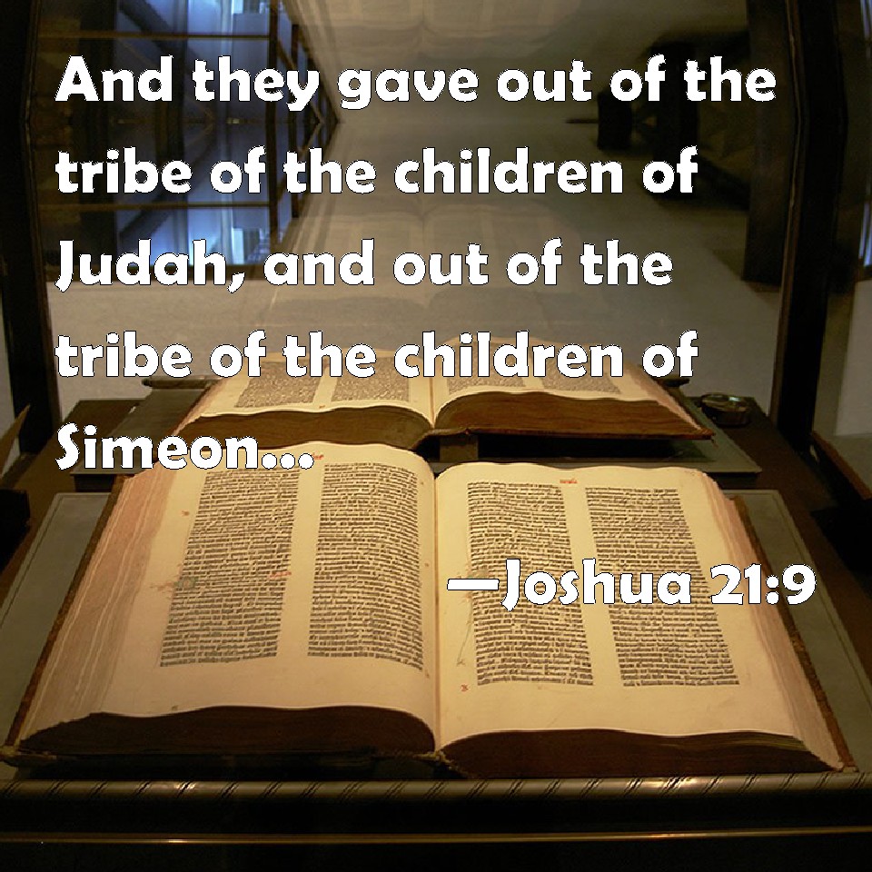 Choose a Background Joshua 21:9 And they gave out of the tribe of the children of Judah, and out of the tribe of the children of Simeon, these cities which are here mentioned by name. KJV: And they gave out of the tribe of the children of Judah, and out of the tribe of the children of Simeon, these cities which are here mentioned by name, DRB: Of the tribes of the children of Juda and of Simeon Josue gave cities: whose names are these, DBT: And they gave out of the tribe of the children of Judah, and out of the tribe of the children of Simeon, these cities which were mentioned by name, ERV: And they gave out of the tribe of the children of Judah, and out of the tribe of the children of Simeon, these cities which are here mentioned by name: WBT: And they gave out of the tribe of the children of Judah, and out of the tribe of the children of Simeon, these cities which are here mentioned by name, WEB: They gave out of the tribe of the children of Judah, and out of the tribe of the children of Simeon, these cities which are mentioned by name: YLT: And they give out of the tribe of the sons of Judah, and out of the tribe of the sons of Simeon, these cities which are called by name;Links Joshua 21:9 NIV • Joshua 21:9 NLT • Joshua 21:9 ESV • Joshua 21:9 NASB • Joshua 21:9 KJV • Joshua 21:9 Interlinear • Joshua 21:9 Commentaries • Joshua 21:9 Parallel Texts • Joshua 21:9 Bible Apps • Joshua 21:9 Parallel • Bible Hub |