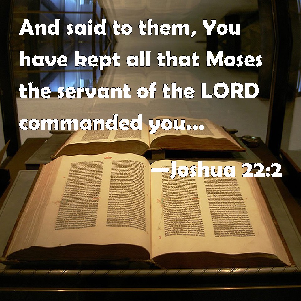 Choose a Background Joshua 22:2 And said to them, You have kept all that Moses the servant of the LORD commanded you, and have obeyed my voice in all that I commanded you: KJV: And said unto them, Ye have kept all that Moses the servant of the LORD commanded you, and have obeyed my voice in all that I commanded you: DRB: And said to them: You have done all that Moses the servant of the Lord commanded you: you have also obeyed me in all things, DBT: and said unto them, Ye have kept all that Moses the servant of Jehovah commanded you, and have hearkened to my voice in all that I commanded you. ERV: and said unto them, Ye have kept all that Moses the servant of the LORD commanded you, and have hearkened unto my voice in all that I commanded you: WBT: And said to them, Ye have kept all that Moses the servant of the LORD commanded you, and have obeyed my voice in all that I commanded you: WEB: and said to them, "You have kept all that Moses the servant of Yahweh commanded you, and have listened to my voice in all that I commanded you. YLT: and saith unto them, 'Ye — ye have kept the whole of that which Moses, servant of Jehovah, commanded you, and ye hearken to my voice, to all that I have commanded you;Links Joshua 22:2 NIV • Joshua 22:2 NLT • Joshua 22:2 ESV • Joshua 22:2 NASB • Joshua 22:2 KJV • Joshua 22:2 Interlinear • Joshua 22:2 Commentaries • Joshua 22:2 Parallel Texts • Joshua 22:2 Bible Apps • Joshua 22:2 Parallel • Bible Hub |