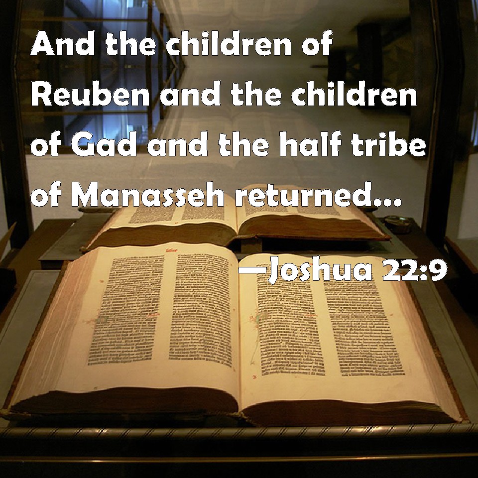Choose a Background Joshua 22:9 And the children of Reuben and the children of Gad and the half tribe of Manasseh returned, and departed from the children of Israel out of Shiloh, which is in the land of Canaan, to go to the country of Gilead, to the land of their possession, whereof they were possessed, according to the word of the LORD by the hand of Moses. KJV: And the children of Reuben and the children of Gad and the half tribe of Manasseh returned, and departed from the children of Israel out of Shiloh, which is in the land of Canaan, to go unto the country of Gilead, to the land of their possession, whereof they were possessed, according to the word of the LORD by the hand of Moses. DRB: So the children of Ruben, and the children of Gad, and the half tribe of Manasses returned, and parted from the children of Israel in Silo, which is in Chanaan, to go into Galaad the land of their possession, which they had obtained according to the commandment of the Lord by the hand of Moses. DBT: And the children of Reuben and the children of Gad and the half tribe of Manasseh returned, and departed from the children of Israel out of Shiloh, which is in the land of Canaan, to go to the country of Gilead, into the land of their possession, of which they had become possessed, according to the word of Jehovah through Moses. ERV: And the children of Reuben and the children of Gad and the half tribe of Manasseh returned, and departed from the children of Israel out of Shiloh, which is in the land of Canaan, to go unto the land of Gilead, to the land of their possession, whereof they were possessed, according to the commandment of the LORD by the hand of Moses. WBT: And the children of Reuben, and the children of Gad, and the half-tribe of Manasseh returned, and departed from the children of Israel out of Shiloh, which is in the land of Canaan, to go to the country of Gilead, to the land of their possession, of which they were possessed, according to the word of the LORD by the hand of Moses. WEB: The children of Reuben and the children of Gad and the half-tribe of Manasseh returned, and departed from the children of Israel out of Shiloh, which is in the land of Canaan, to go to the land of Gilead, to the land of their possession, which they owned, according to the commandment of Yahweh by Moses. YLT: And the sons of Reuben, and the sons of Gad, and the half of the tribe of Manasseh, turn back and go from the sons of Israel out of Shiloh, which is in the land of Canaan, to go unto the land of Gilead, unto the land of their possession, in which they have possession, according to the command of Jehovah, by the hand of Moses;Links Joshua 22:9 NIV • Joshua 22:9 NLT • Joshua 22:9 ESV • Joshua 22:9 NASB • Joshua 22:9 KJV • Joshua 22:9 Interlinear • Joshua 22:9 Commentaries • Joshua 22:9 Parallel Texts • Joshua 22:9 Bible Apps • Joshua 22:9 Parallel • Bible Hub |