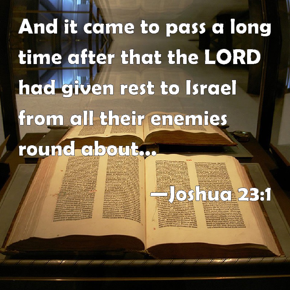 Joshua 23:1 And it came to pass a long time after that the LORD had given rest to Israel from all their enemies round about, that Joshua waxed old and stricken in age.