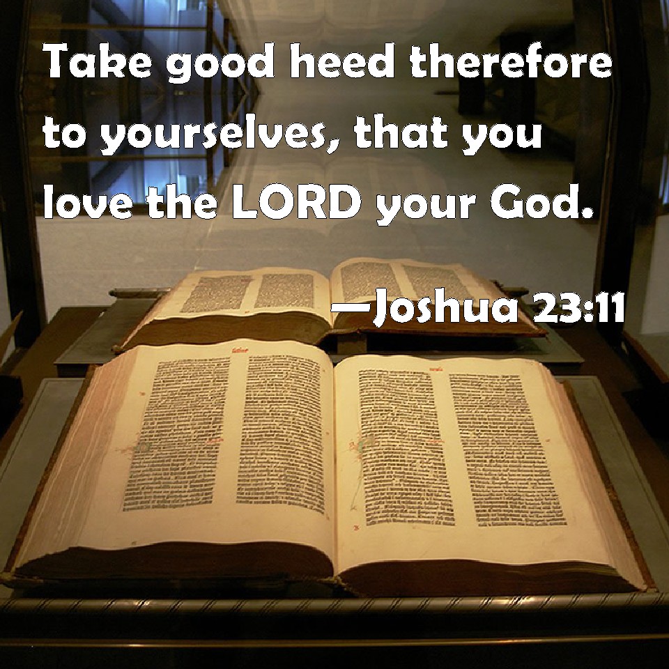 Joshua 23:11 Take good heed therefore to yourselves, that you love the LORD your God.