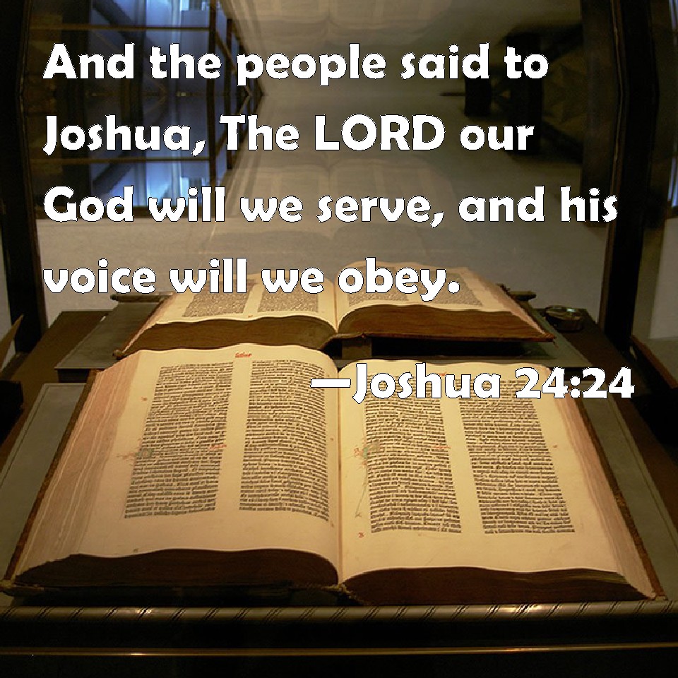 Choose a Background Joshua 24:24 And the people said to Joshua, The LORD our God will we serve, and his voice will we obey. KJV: And the people said unto Joshua, The LORD our God will we serve, and his voice will we obey. DRB: And the people said to Josue: We will serve the Lord our God, and we will be obedient to his commandments. DBT: And the people said unto Joshua, Jehovah our God will we serve, and to his voice will we hearken. ERV: And the people said unto Joshua, The LORD our God will we serve, and unto his voice will we hearken. WBT: And the people said to Joshua, The LORD our God will we serve, and his voice will we obey. WEB: The people said to Joshua, "We will serve Yahweh our God, and we will listen to his voice." YLT: And the people say unto Joshua, 'Jehovah our God we serve, and to His voice we hearken.'Links Joshua 24:24 NIV • Joshua 24:24 NLT • Joshua 24:24 ESV • Joshua 24:24 NASB • Joshua 24:24 KJV • Joshua 24:24 Interlinear • Joshua 24:24 Commentaries • Joshua 24:24 Parallel Texts • Joshua 24:24 Bible Apps • Joshua 24:24 Parallel • Bible Hub |