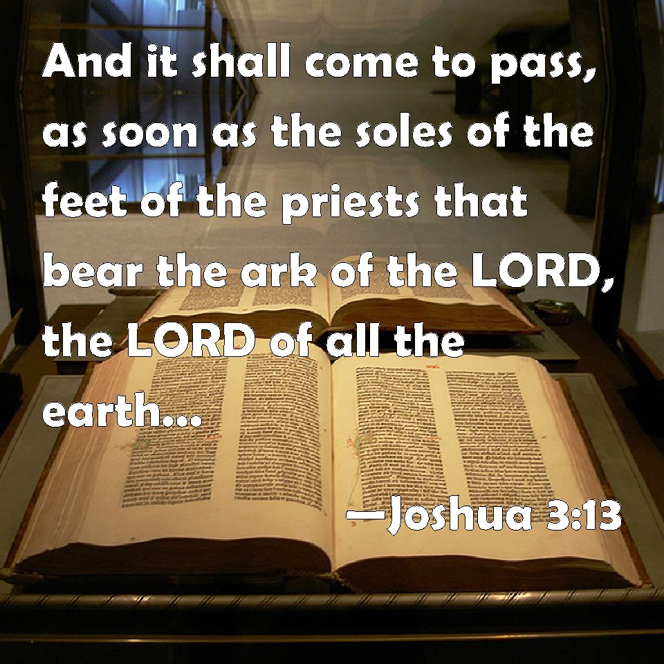 WBT:  And it shall come to pass, as soon as the soles of the feet of the priests that bear the ark of the LORD, the Lord of all the earth, shall rest in the waters of Jordan, that the waters of Jordan shall be cut off from the waters that come down from above; and they shall stand in a heap.
