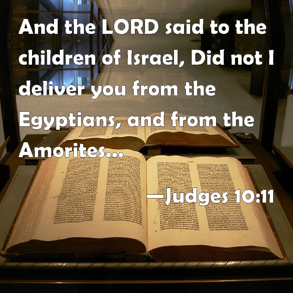 Choose a Background Judges 10:11 And the LORD said to the children of Israel, Did not I deliver you from the Egyptians, and from the Amorites, from the children of Ammon, and from the Philistines? KJV: And the LORD said unto the children of Israel, Did not I deliver you from the Egyptians, and from the Amorites, from the children of Ammon, and from the Philistines? DRB: And the Lord said to them: Did not the Egyptians and the Amorrhites, and the children of Ammon and the Philistines, DBT: And the LORD said to the people of Israel, "Did I not deliver you from the Egyptians and from the Amorites, from the Ammonites and from the Philistines? ERV: And the LORD said unto the children of Israel, Did not I save you from the Egyptians, and from the Amorites, from the children of Ammon, and from the Philistines? WBT: And the LORD said to the children of Israel, Did not I deliver you from the Egyptians, and from the Amorites, from the children of Ammon, and from the Philistines? WEB: Yahweh said to the children of Israel, "Didn't I save you from the Egyptians, and from the Amorites, from the children of Ammon, and from the Philistines? YLT: And Jehovah saith unto the sons of Israel, 'Have I not saved you from the Egyptians, and from the Amorite, from the Bene-Ammon, and from the Philistines?Links Judges 10:11 NIV • Judges 10:11 NLT • Judges 10:11 ESV • Judges 10:11 NASB • Judges 10:11 KJV • Judges 10:11 Interlinear • Judges 10:11 Commentaries • Judges 10:11 Parallel Texts • Judges 10:11 Bible Apps • Judges 10:11 Parallel • Bible Hub |
