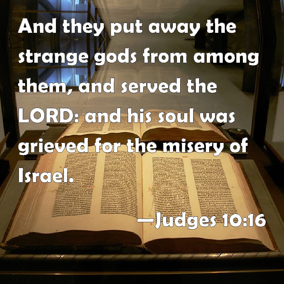 Judges 10:16 And they put away the strange gods from among them, and served the LORD: and his soul was grieved for the misery of Israel.