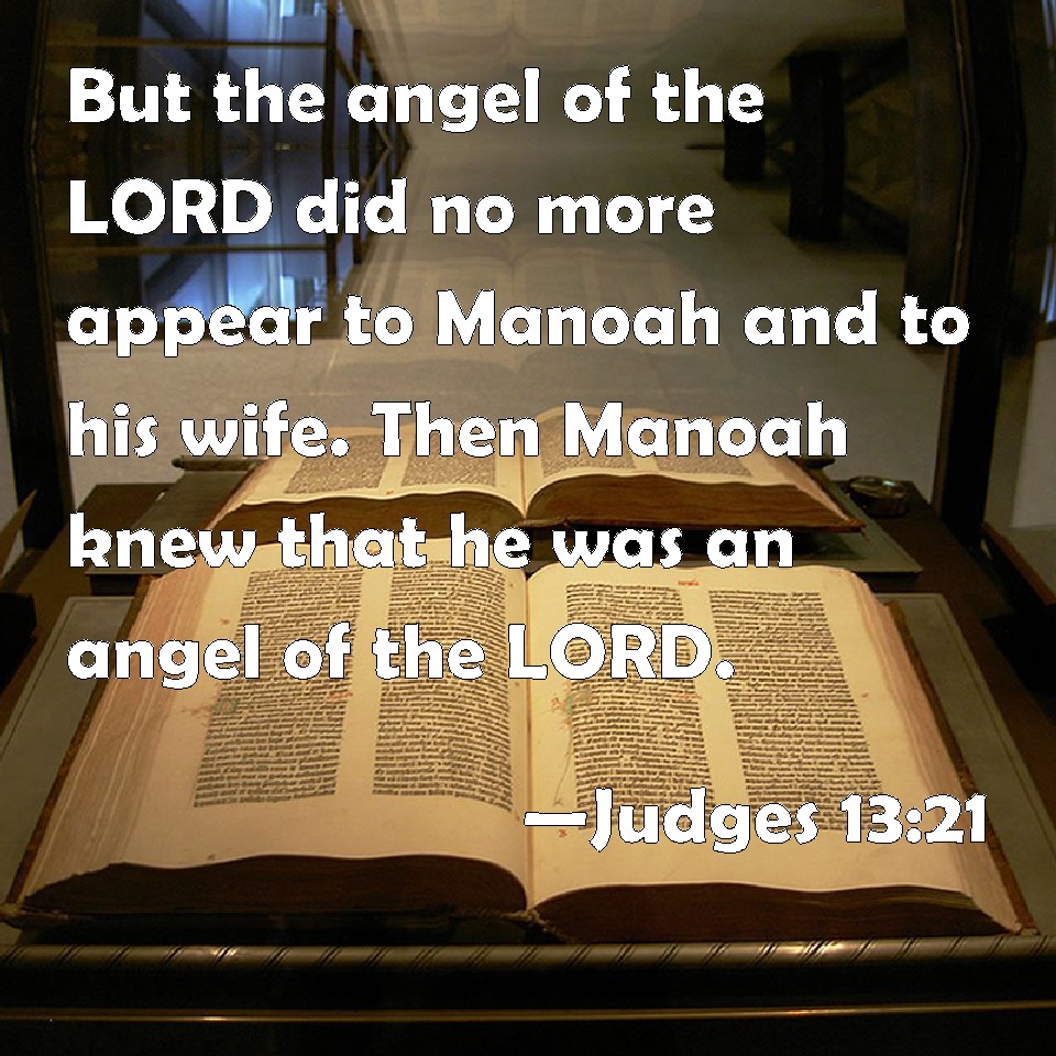 But the angel of the LORD did no more appear to Manoah and to his wife. Then Manoah knew that he was an angel of the LORD.