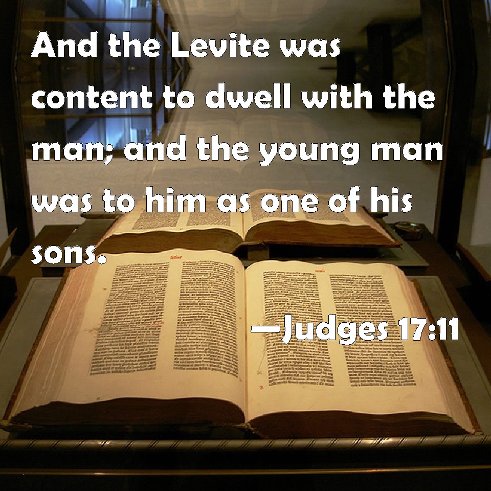Judges 17:11 And the Levite was content to dwell with the man; and the young man was to him as one of his sons.