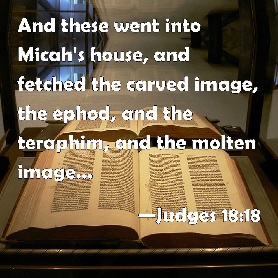 Choose a Background Judges 18:18 And these went into Micah's house, and fetched the carved image, the ephod, and the teraphim, and the molten image. Then said the priest to them, What do you? KJV: And these went into Micah's house, and fetched the carved image, the ephod, and the teraphim, and the molten image. Then said the priest unto them, What do ye? DRB: So they that were gone in took away the graven thing, the ephod, and the idols, and the molten god. And the priest said to them: What are you doing? DBT: And when these went into Micah's house and took the graven image, the ephod, the teraphim, and the molten image, the priest said to them, "What are you doing?" ERV: And when these went into Micah's house and fetched the graven image, the ephod, and the teraphim, and the molten image, the priest said unto them, What do ye? WBT: And these went into Micah's house, and brought the carved image, the ephod, and the teraphim, and the molten image. Then said the priest to them, What do ye? WEB: When these went into Micah's house, and fetched the engraved image, the ephod, and the teraphim, and the molten image, the priest said to them, "What are you doing?" YLT: yea, these have entered the house of Micah, and take the graven image, the ephod, and the teraphim, and the molten image; and the priest saith unto them, 'What are ye doing?'Links Judges 18:18 NIV • Judges 18:18 NLT • Judges 18:18 ESV • Judges 18:18 NASB • Judges 18:18 KJV • Judges 18:18 Interlinear • Judges 18:18 Commentaries • Judges 18:18 Parallel Texts • Judges 18:18 Bible Apps • Judges 18:18 Parallel • Bible Hub |