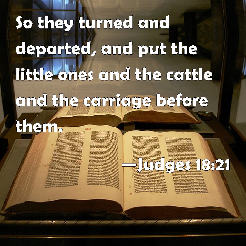 Choose a Background Judges 18:21 So they turned and departed, and put the little ones and the cattle and the carriage before them. KJV: So they turned and departed, and put the little ones and the cattle and the carriage before them. DRB: And when they were going forward, and had put before them the children and the cattle and all that was valuable, DBT: So they turned and departed, putting the little ones and the cattle and the goods in front of them. ERV: So they turned and departed, and put the little ones and the cattle and the goods before them. WBT: So they turned and departed, and put the little ones, and the cattle, and the furniture before them. WEB: So they turned and departed, and put the little ones and the livestock and the goods before them. YLT: and they turn and go, and put the infants, and the cattle, and the baggage, before them.Links Judges 18:21 NIV • Judges 18:21 NLT • Judges 18:21 ESV • Judges 18:21 NASB • Judges 18:21 KJV • Judges 18:21 Interlinear • Judges 18:21 Commentaries • Judges 18:21 Parallel Texts • Judges 18:21 Bible Apps • Judges 18:21 Parallel • Bible Hub |
