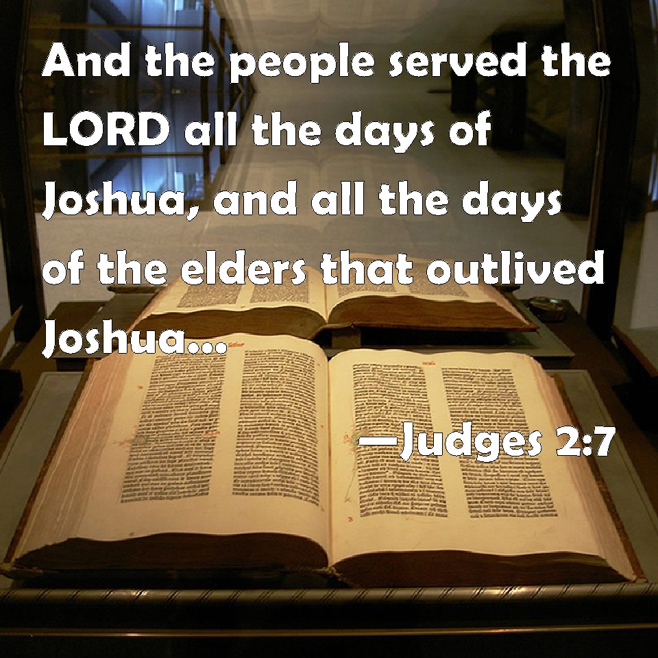 Choose a Background Judges 2:7 And the people served the LORD all the days of Joshua, and all the days of the elders that outlived Joshua, who had seen all the great works of the LORD, that he did for Israel. KJV: And the people served the LORD all the days of Joshua, and all the days of the elders that outlived Joshua, who had seen all the great works of the LORD, that he did for Israel. DRB: And they served the Lord all his days, and the days of the ancients, that lived a long time after him, and who knew all the works of the Lord, which he had done for Israel. DBT: And the people served the LORD all the days of Joshua, and all the days of the elders who outlived Joshua, who had seen all the great work which the LORD had done for Israel. ERV: And the people served the LORD all the days of Joshua, and all the days of the elders that outlived Joshua, who had seen all the great work of the LORD, that he had wrought for Israel. WBT: And the people served the LORD all the days of Joshua, and all the days of the elders that outlived Joshua, who had seen all the great works of the LORD, that he did for Israel. WEB: The people served Yahweh all the days of Joshua, and all the days of the elders who outlived Joshua, who had seen all the great work of Yahweh that he had worked for Israel. YLT: and the people serve Jehovah all the days of Joshua, and all the days of the elders who prolonged days after Joshua, who saw all the great work of Jehovah which He did to Israel.Links Judges 2:7 NIV • Judges 2:7 NLT • Judges 2:7 ESV • Judges 2:7 NASB • Judges 2:7 KJV • Judges 2:7 Interlinear • Judges 2:7 Commentaries • Judges 2:7 Parallel Texts • Judges 2:7 Bible Apps • Judges 2:7 Parallel • Bible Hub |