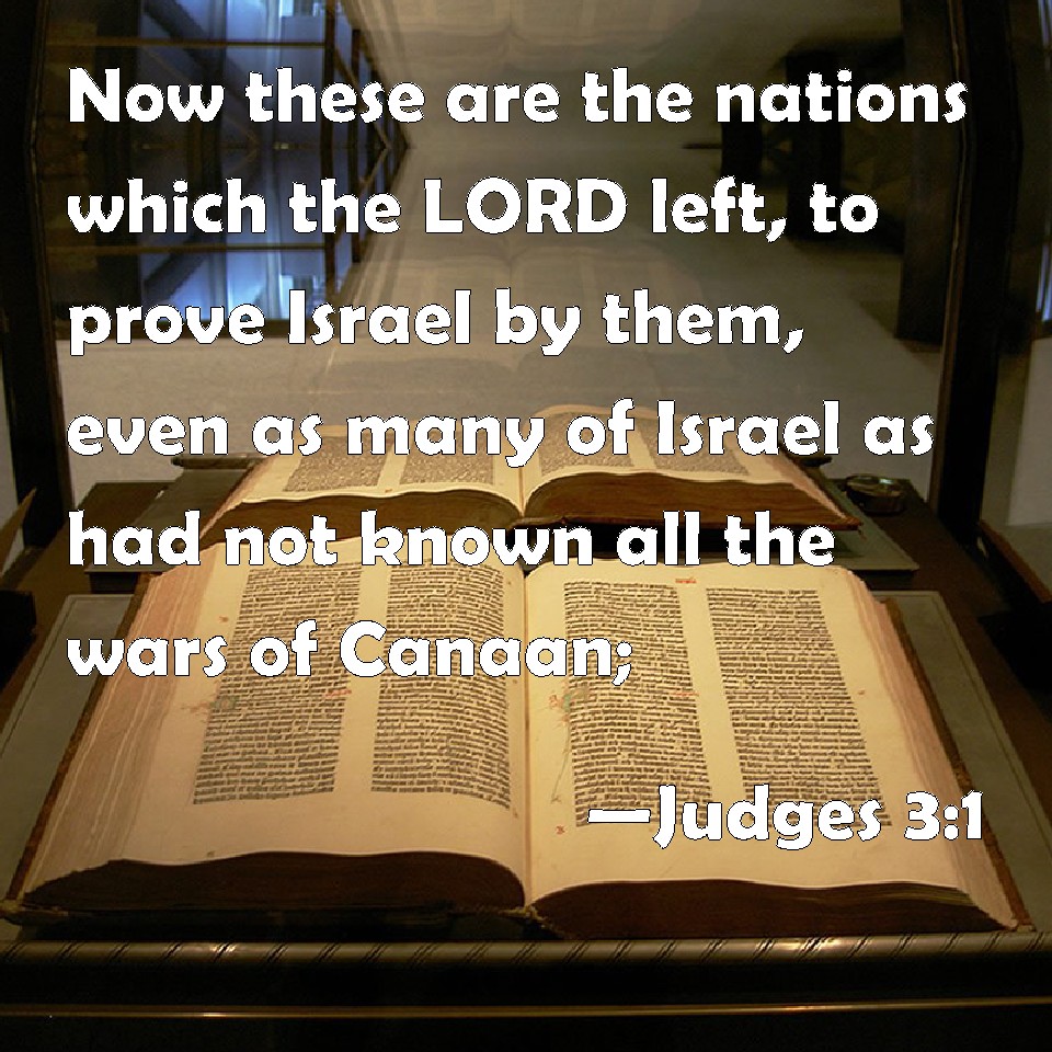 Choose a Background Judges 3:1 Now these are the nations which the LORD left, to prove Israel by them, even as many of Israel as had not known all the wars of Canaan; KJV: Now these are the nations which the LORD left, to prove Israel by them, even as many of Israel as had not known all the wars of Canaan; DRB: These are the nations which the Lord left, that by them he might instruct Israel, and all that had not known the wars of the Chanaanites: DBT: Now these are the nations which the LORD left, to test Israel by them, that is, all in Israel who had no experience of any war in Canaan; ERV: Now these are the nations which the LORD left, to prove Israel by them, even as many as had not known all the wars of Canaan; WBT: Now these are the nations which the LORD left, to prove Israel by them, (even as many of Israel as had not known all the wars of Canaan; WEB: Now these are the nations which Yahweh left, to prove Israel by them, even as many [of Israel] as had not known all the wars of Canaan; YLT: And these are the nations which Jehovah left, to try Israel by them, all who have not known all the wars of Canaan;Links Judges 3:1 NIV • Judges 3:1 NLT • Judges 3:1 ESV • Judges 3:1 NASB • Judges 3:1 KJV • Judges 3:1 Interlinear • Judges 3:1 Commentaries • Judges 3:1 Parallel Texts • Judges 3:1 Bible Apps • Judges 3:1 Parallel • Bible Hub |