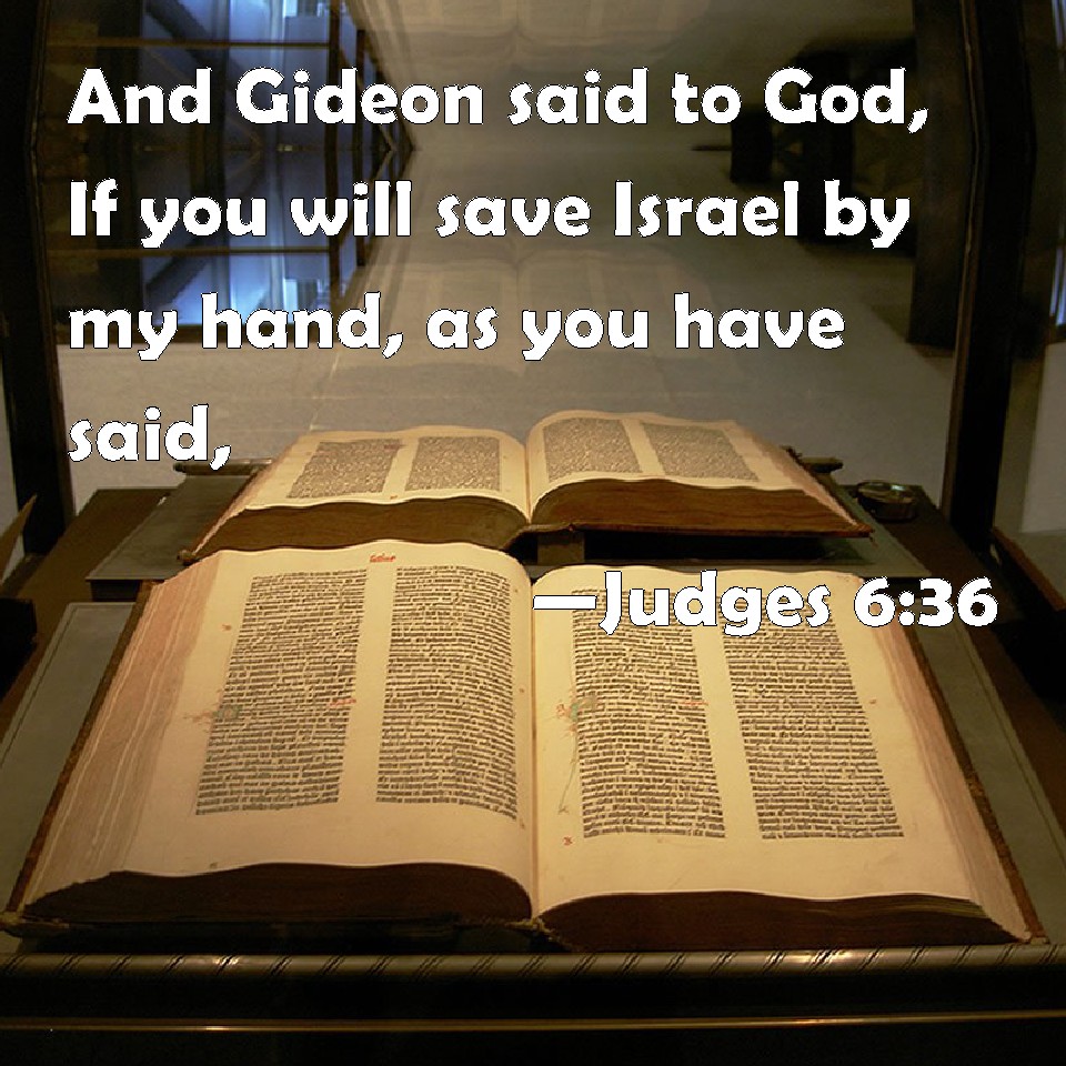 Choose a Background Judges 6:36 And Gideon said to God, If you will save Israel by my hand, as you have said, KJV: And Gideon said unto God, If thou wilt save Israel by mine hand, as thou hast said, DRB: And Gedeon said to God: If thou wilt save Israel by my hand, as thou hast said, DBT: Then Gideon said to God, "If thou wilt deliver Israel by my hand, as thou hast said, ERV: And Gideon said unto God, If thou wilt save Israel by mine hand, as thou hast spoken, WBT: And Gideon said to God, If thou wilt save Israel by my hand, as thou hast said, WEB: Gideon said to God, "If you will save Israel by my hand, as you have spoken, YLT: And Gideon saith unto God, 'If Thou art Saviour of Israel by my hand, as Thou hast spoken,Links Judges 6:36 NIV • Judges 6:36 NLT • Judges 6:36 ESV • Judges 6:36 NASB • Judges 6:36 KJV • Judges 6:36 Interlinear • Judges 6:36 Commentaries • Judges 6:36 Parallel Texts • Judges 6:36 Bible Apps • Judges 6:36 Parallel • Bible Hub |