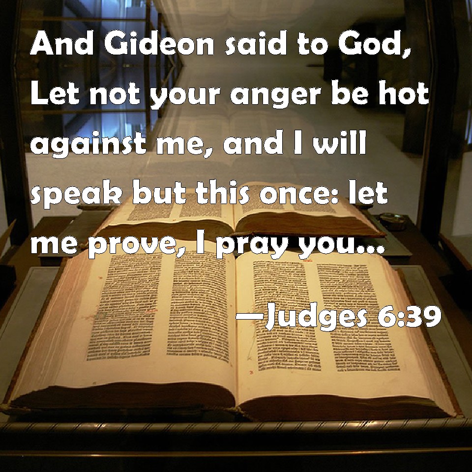 Choose a Background Judges 6:39 And Gideon said to God, Let not your anger be hot against me, and I will speak but this once: let me prove, I pray you, but this once with the fleece; let it now be dry only on the fleece, and on all the ground let there be dew. KJV: And Gideon said unto God, Let not thine anger be hot against me, and I will speak but this once: let me prove, I pray thee, but this once with the fleece; let it now be dry only upon the fleece, and upon all the ground let there be dew. DRB: And he said again to God: let not thy wrath be kindled against me if I try once more, seeking a sign in the fleece. I pray that the fleece only may be dry, and all the ground wet with dew. DBT: Then Gideon said to God, "Let not thy anger burn against me, let me speak but this once; pray, let me make trial only this once with the fleece; pray, let it be dry only on the fleece, and on all the ground let there be dew." ERV: And Gideon said unto God, Let not thine anger be kindled against me, and I will speak but this once: let me prove, I pray thee, but this once with the fleece; let it now be dry only upon the fleece, and upon all the ground let there be dew. WBT: And Gideon said to God, Let not thy anger be hot against me, and I will speak but this once: Let me make trial, I pray thee, but this once with the fleece; let it now be dry only upon the fleece, and upon all the ground let there be dew. WEB: Gideon said to God, "Don't let your anger be kindled against me, and I will speak but this once. Please let me make a trial just this once with the fleece. Let it now be dry only on the fleece, and on all the ground let there be dew." YLT: And Gideon saith unto God, 'Let not Thine anger burn against me, and I speak only this time; let me try, I pray Thee, only this time with the fleece — let there be, I pray Thee, drought on the fleece alone, and on all the earth let there be dew.'Links Judges 6:39 NIV • Judges 6:39 NLT • Judges 6:39 ESV • Judges 6:39 NASB • Judges 6:39 KJV • Judges 6:39 Interlinear • Judges 6:39 Commentaries • Judges 6:39 Parallel Texts • Judges 6:39 Bible Apps • Judges 6:39 Parallel • Bible Hub |