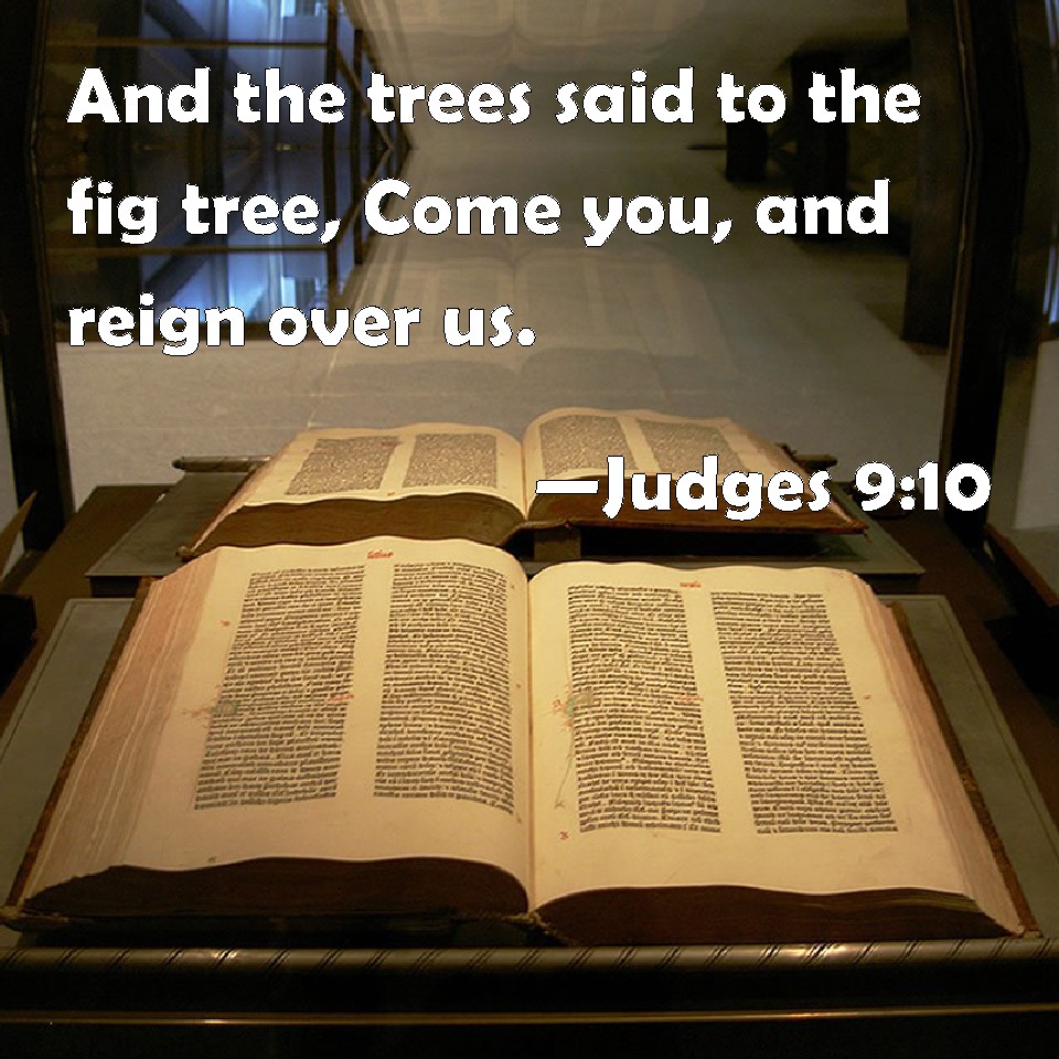 Choose a Background Judges 9:10 And the trees said to the fig tree, Come you, and reign over us. KJV: And the trees said to the fig tree, Come thou, and reign over us. DRB: And the trees said to the fig tree: Come thou and reign over us. DBT: And the trees said to the fig tree, 'Come you, and reign over us.' ERV: And the trees said to the fig tree, Come thou, and reign over us. WBT: And the trees said to the fig-tree, Come thou, and reign over us. WEB: "The trees said to the fig tree, 'Come and reign over us.' YLT: And the trees say to the fig, Come thou, reign over us.Links Judges 9:10 NIV • Judges 9:10 NLT • Judges 9:10 ESV • Judges 9:10 NASB • Judges 9:10 KJV • Judges 9:10 Interlinear • Judges 9:10 Commentaries • Judges 9:10 Parallel Texts • Judges 9:10 Bible Apps • Judges 9:10 Parallel • Bible Hub |