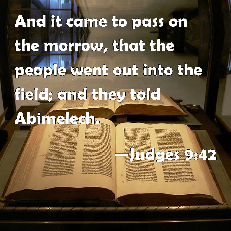 Judges 9:42 And it came to pass on the morrow, that the people went out into the field; and they told Abimelech.