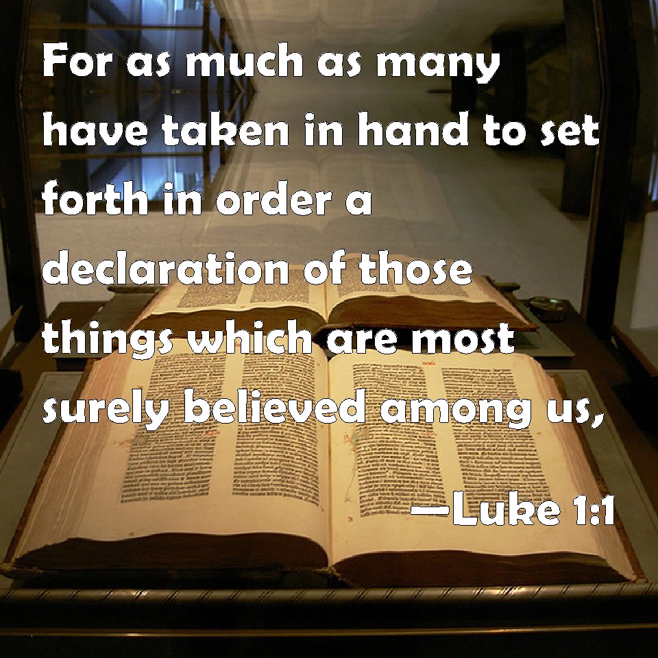 Luke 1:1 For as much as many have taken in hand to set forth in order a declaration of those things which are most surely believed among us,
