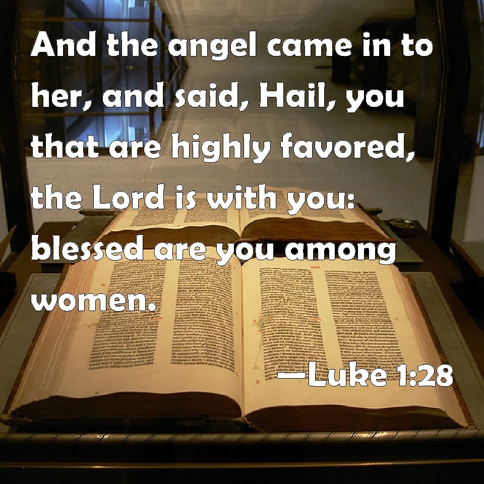 Choose a Background Luke 1:28 And the angel came in to her, and said, Hail, you that are highly favored, the Lord is with you: blessed are you among women. KJV: And the angel came in unto her, and said, Hail, thou that art highly favoured, the Lord is with thee: blessed art thou among women. DRB: And the angel being come in, said unto her: Hail, full of grace, the Lord is with thee: blessed art thou among women. DBT: And the angel came in to her, and said, Hail, thou favoured one! the Lord is with thee: blessed art thou amongst women. ERV: And he came in unto her, and said, Hail, thou that art highly favoured, the Lord is with thee. WBT: And the angel came to her, and said, Hail, thou that art highly favored, the Lord is with thee: blessed art thou among women. WEB: Having come in, the angel said to her, "Rejoice, you highly favored one! The Lord is with you. Blessed are you among women!" YLT: And the messenger having come in unto her, said, 'Hail, favoured one, the Lord is with thee; blessed art thou among women;'Links Luke 1:28 NIV • Luke 1:28 NLT • Luke 1:28 ESV • Luke 1:28 NASB • Luke 1:28 KJV • Luke 1:28 Interlinear • Luke 1:28 Commentaries • Luke 1:28 Parallel Texts • Luke 1:28 Bible Apps • Luke 1:28 Parallel • Bible Hub |