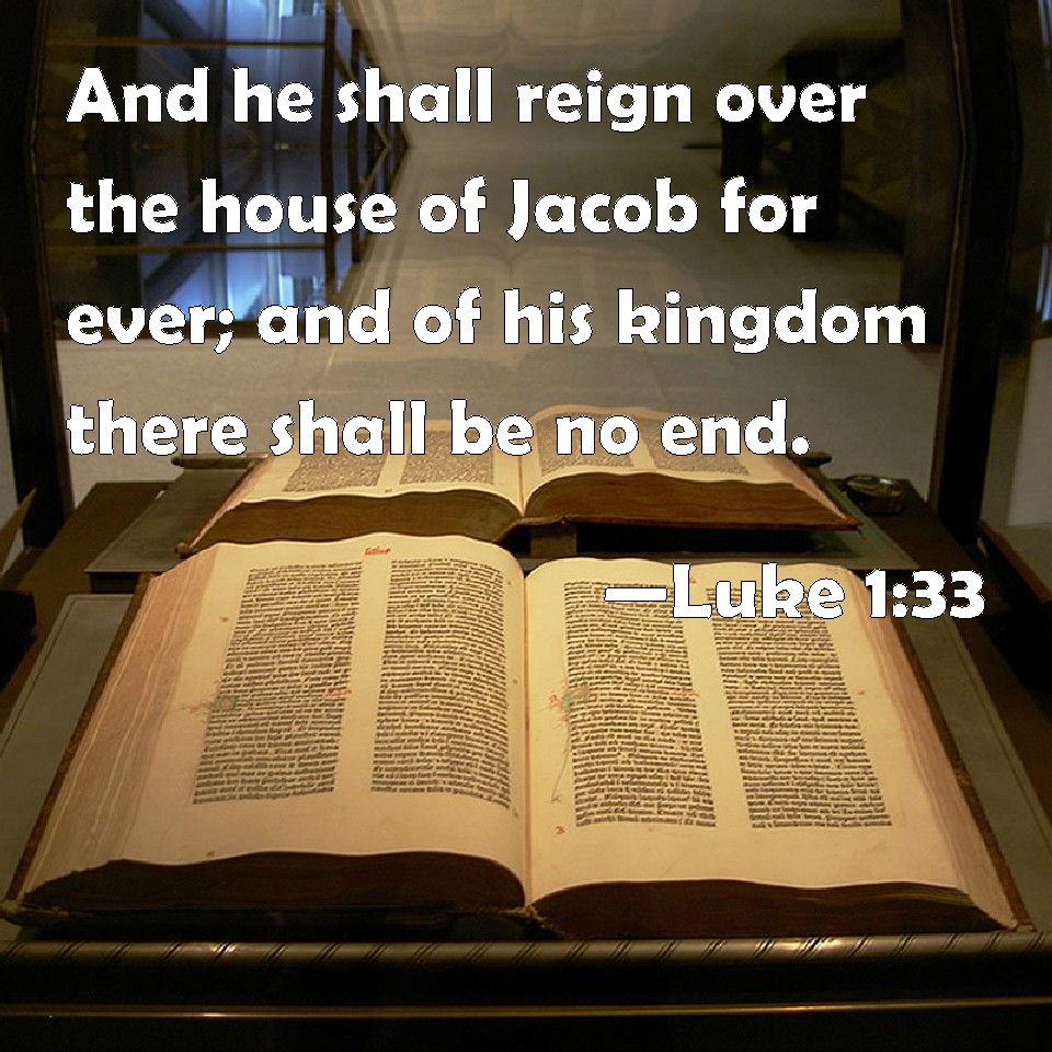 Luke 1:33 And he shall reign over the house of Jacob for ever; and of his kingdom there shall be no end.