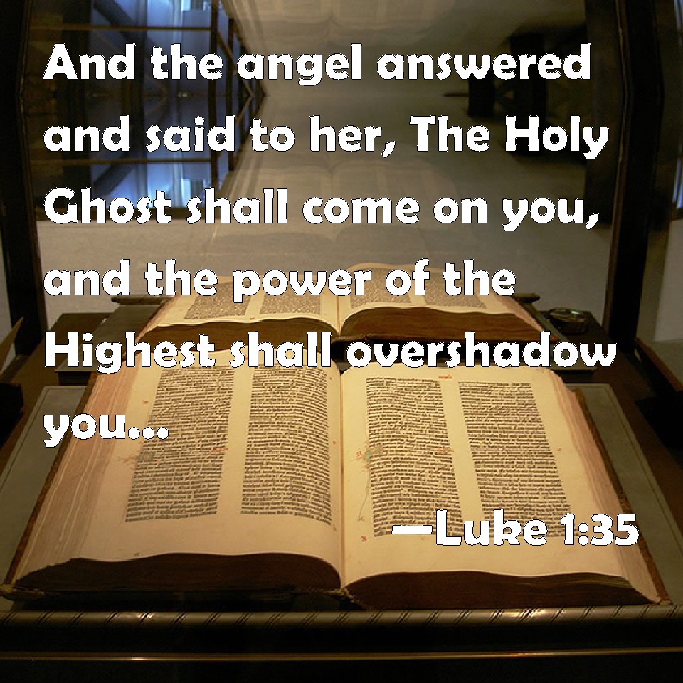 Choose a Background Luke 1:35 And the angel answered and said to her, The Holy Ghost shall come on you, and the power of the Highest shall overshadow you: therefore also that holy thing which shall be born of you shall be called the Son of God. KJV: And the angel answered and said unto her, The Holy Ghost shall come upon thee, and the power of the Highest shall overshadow thee: therefore also that holy thing which shall be born of thee shall be called the Son of God. DRB: And the angel answering, said to her: The Holy Ghost shall come upon thee, and the power of the most High shall overshadow thee. And therefore also the Holy which shall be born of thee shall be called the Son of God. DBT: And the angel answering said to her, The Holy Spirit shall come upon thee, and power of the Highest overshadow thee, wherefore the holy thing also which shall be born shall be called Son of God. ERV: And the angel answered and said unto her, The Holy Ghost shall come upon thee, and the power of the Most High shall overshadow thee: wherefore also that which is to be born shall be called holy, the Son of God. WBT: And the angel answered and said to her, The Holy Spirit will come upon thee, and the power of the Highest will overshadow thee: therefore also that holy thing which shall be born of thee shall be called the Son of God. WEB: The angel answered her, "The Holy Spirit will come on you, and the power of the Most High will overshadow you. Therefore also the holy one who is born from you will be called the Son of God. YLT: And the messenger answering said to her, 'The Holy Spirit shall come upon thee, and the power of the Highest shall overshadow thee, therefore also the holy-begotten thing shall be called Son of God;Links Luke 1:35 NIV • Luke 1:35 NLT • Luke 1:35 ESV • Luke 1:35 NASB • Luke 1:35 KJV • Luke 1:35 Interlinear • Luke 1:35 Commentaries • Luke 1:35 Parallel Texts • Luke 1:35 Bible Apps • Luke 1:35 Parallel • Bible Hub |