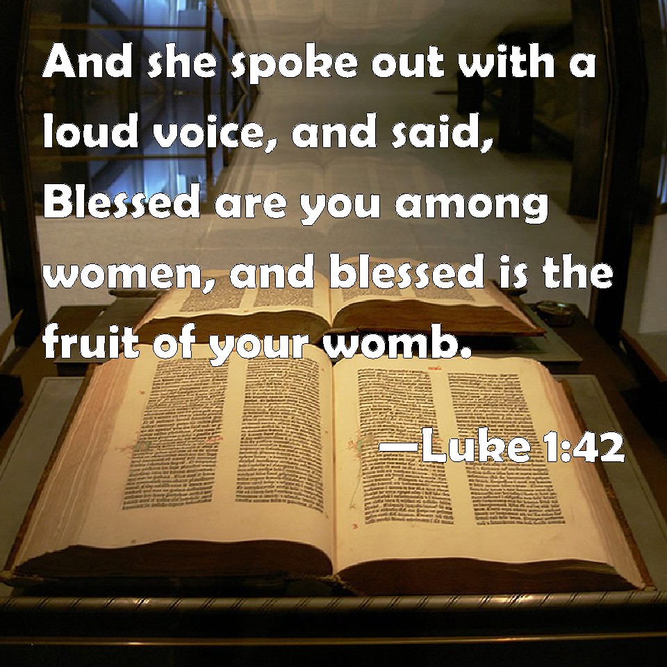 Choose a Background Luke 1:42 And she spoke out with a loud voice, and said, Blessed are you among women, and blessed is the fruit of your womb. KJV: And she spake out with a loud voice, and said, Blessed art thou among women, and blessed is the fruit of thy womb. DRB: And she cried out with a loud voice, and said: Blessed art thou among women, and blessed is the fruit of thy womb. DBT: and cried out with a loud voice and said, Blessed art thou amongst women, and blessed the fruit of thy womb. ERV: and she lifted up her voice with a loud cry, and said, Blessed art thou among women, and blessed is the fruit of thy womb. WBT: And she spoke with a loud voice, and said, Blessed art thou among women, and blessed is the fruit of thy womb. WEB: She called out with a loud voice, and said, "Blessed are you among women, and blessed is the fruit of your womb! YLT: and spake out with a loud voice, and said, 'Blessed art thou among women, and blessed is the fruit of thy womb;Links Luke 1:42 NIV • Luke 1:42 NLT • Luke 1:42 ESV • Luke 1:42 NASB • Luke 1:42 KJV • Luke 1:42 Interlinear • Luke 1:42 Commentaries • Luke 1:42 Parallel Texts • Luke 1:42 Bible Apps • Luke 1:42 Parallel • Bible Hub |