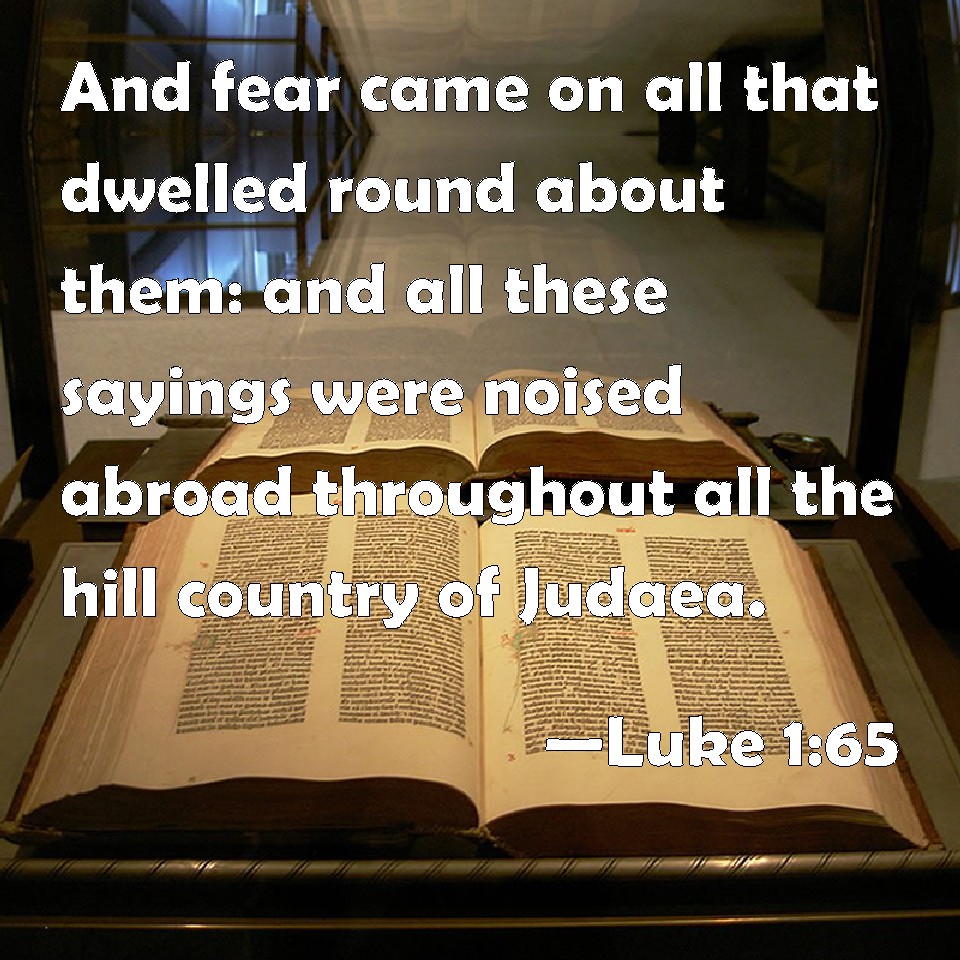 Luke 1:65 And fear came on all that dwelled round about them: and all these sayings were noised abroad throughout all the hill country of Judaea.