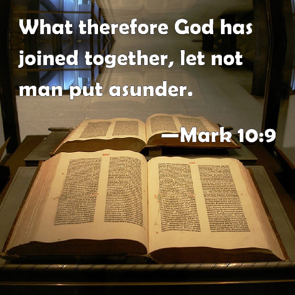 Mark 10:9 What therefore God has joined together, let not man put asunder.