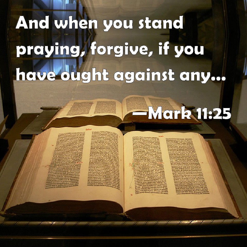 Choose a Background Mark 11:25 And when you stand praying, forgive, if you have ought against any: that your Father also which is in heaven may forgive you your trespasses. KJV: And when ye stand praying, forgive, if ye have ought against any: that your Father also which is in heaven may forgive you your trespasses. DRB: And when you shall stand to pray, forgive, if you have aught against any man; that your Father also, who is in heaven, may forgive you your sins. DBT: And when ye stand praying, forgive if ye have anything against any one, that your Father also who is in the heavens may forgive you your offences. ERV: And whensoever ye stand praying, forgive, if ye have aught against any one; that your Father also which is in heaven may forgive you your trespasses. WBT: And when ye stand praying, forgive, if ye have aught against any: that your Father also who is in heaven may forgive you your trespasses. WEB: Whenever you stand praying, forgive, if you have anything against anyone; so that your Father, who is in heaven, may also forgive you your transgressions. YLT: 'And whenever ye may stand praying, forgive, if ye have anything against any one, that your Father also who is in the heavens may forgive you your trespasses;Links Mark 11:25 NIV • Mark 11:25 NLT • Mark 11:25 ESV • Mark 11:25 NASB • Mark 11:25 KJV • Mark 11:25 Interlinear • Mark 11:25 Commentaries • Mark 11:25 Parallel Texts • Mark 11:25 Bible Apps • Mark 11:25 Parallel • Bible Hub |