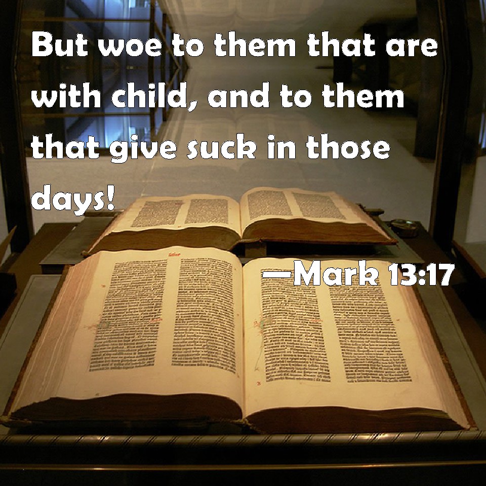 Mark 13:17 But woe to them that are with child, and to them that give suck in those days!