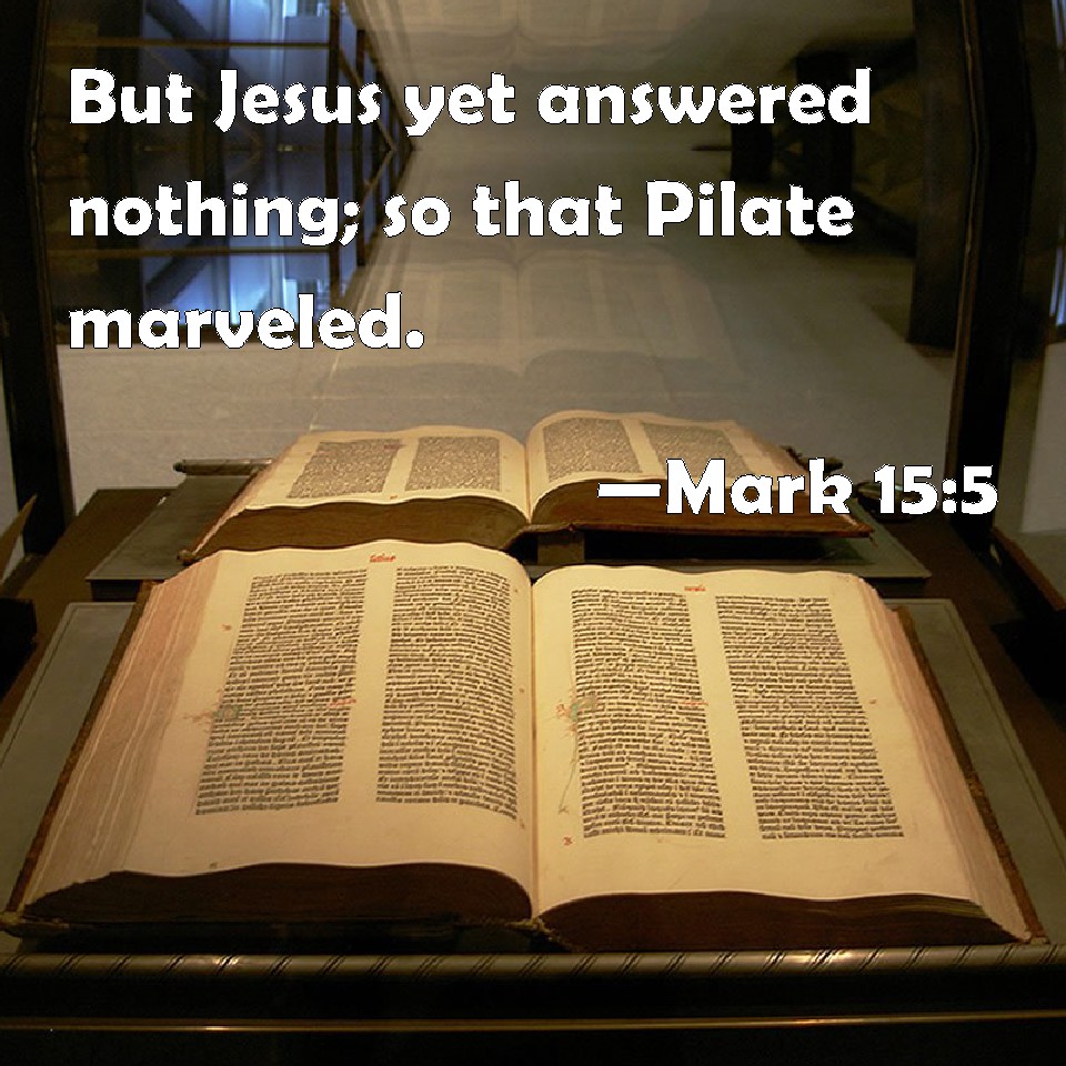 Mark 15:5 But Jesus yet answered nothing; so that Pilate marveled.