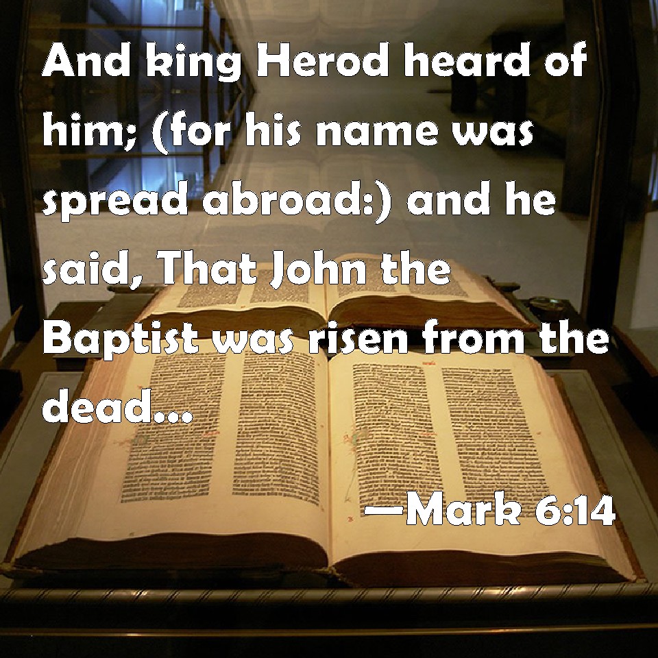 Mark 6:14 And king Herod heard of him; (for his name was spread abroad:) and he said, That John the Baptist was risen from the dead, and therefore mighty works do show forth themselves in him.