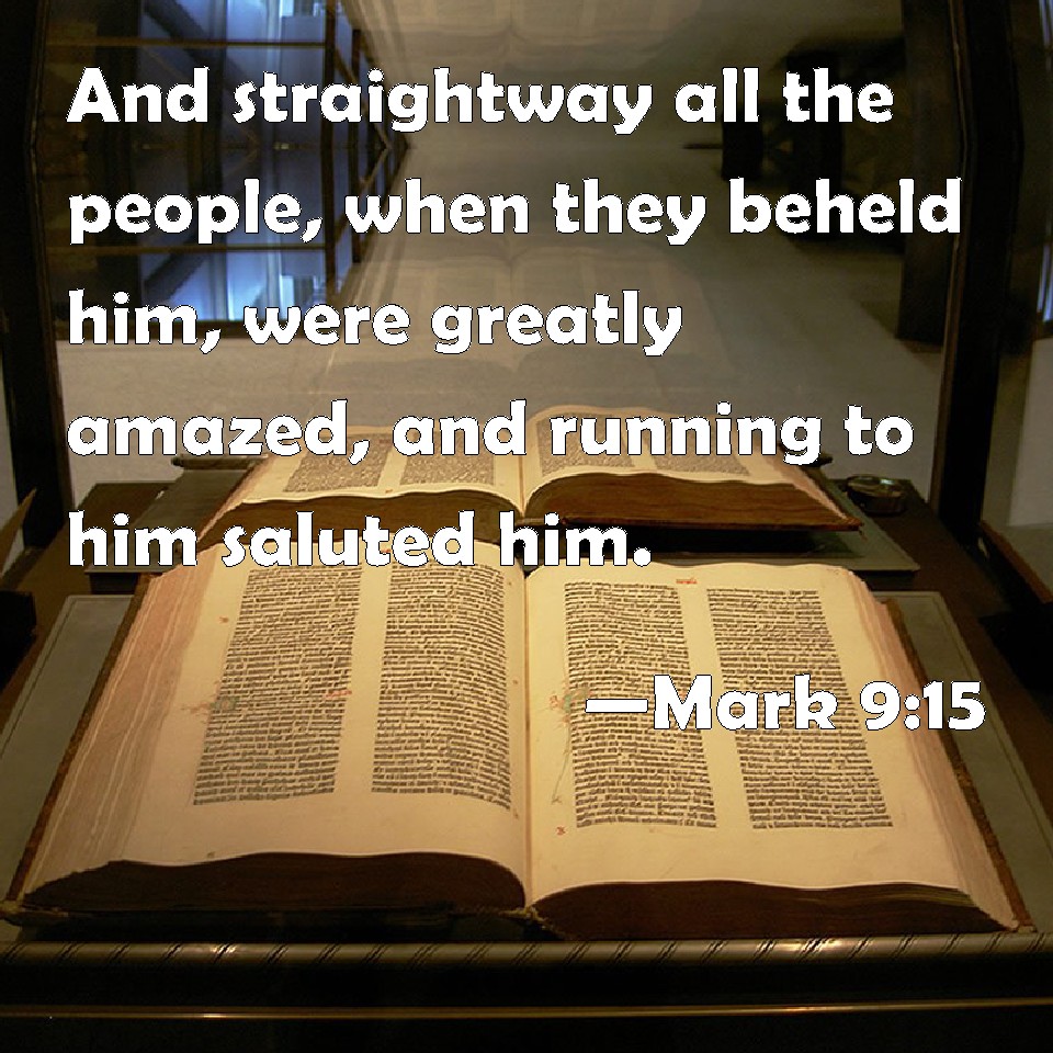 Choose a Background Mark 9:15 And straightway all the people, when they beheld him, were greatly amazed, and running to him saluted him. KJV: And straightway all the people, when they beheld him, were greatly amazed, and running to him saluted him. DRB: And presently all the people seeing Jesus, were astonished and struck with fear; and running to him, they saluted him. DBT: And immediately all the crowd seeing him were amazed, and running to him, saluted him. ERV: And straightway all the multitude, when they saw him, were greatly amazed, and running to him saluted him. WBT: And immediately all the people, when they beheld him, were greatly amazed, and running to him, saluted him. WEB: Immediately all the multitude, when they saw him, were greatly amazed, and running to him greeted him. YLT: and immediately, all the multitude having seen him, were amazed, and running near, were saluting him.Links Mark 9:15 NIV • Mark 9:15 NLT • Mark 9:15 ESV • Mark 9:15 NASB • Mark 9:15 KJV • Mark 9:15 Interlinear • Mark 9:15 Commentaries • Mark 9:15 Parallel Texts • Mark 9:15 Bible Apps • Mark 9:15 Parallel • Bible Hub |