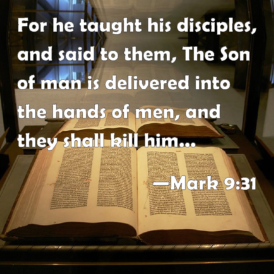 Choose a Background Mark 9:31 For he taught his disciples, and said to them, The Son of man is delivered into the hands of men, and they shall kill him; and after that he is killed, he shall rise the third day. KJV: For he taught his disciples, and said unto them, The Son of man is delivered into the hands of men, and they shall kill him; and after that he is killed, he shall rise the third day. DRB: And he taught his disciple, and said to them: The Son of man shall be betrayed into the hands of men, and they shall kill him; and after that he is killed, he shall rise again the third day. DBT: for he taught his disciples and said to them, The Son of man is delivered into men's hands, and they shall kill him; and having been killed, after three days he shall rise again. ERV: For he taught his disciples, and said unto them, The Son of man is delivered up into the hands of men, and they shall kill him; and when he is killed, after three days he shall rise again. WBT: For he taught his disciples, and said to them, The Son of man is delivered into the hands of men, and they will kill him; and after that he is killed, he will rise the third day. WEB: For he was teaching his disciples, and said to them, "The Son of Man is being handed over to the hands of men, and they will kill him; and when he is killed, on the third day he will rise again." YLT: for he was teaching his disciples, and he said to them, 'The Son of Man is being delivered to the hands of men, and they shall kill him, and having been killed the third day he shall rise,'Links Mark 9:31 NIV • Mark 9:31 NLT • Mark 9:31 ESV • Mark 9:31 NASB • Mark 9:31 KJV • Mark 9:31 Interlinear • Mark 9:31 Commentaries • Mark 9:31 Parallel Texts • Mark 9:31 Bible Apps • Mark 9:31 Parallel • Bible Hub |