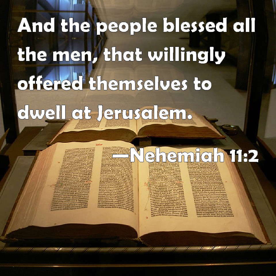 Nehemiah 11:2 And the people blessed all the men, that willingly offered themselves to dwell at Jerusalem.