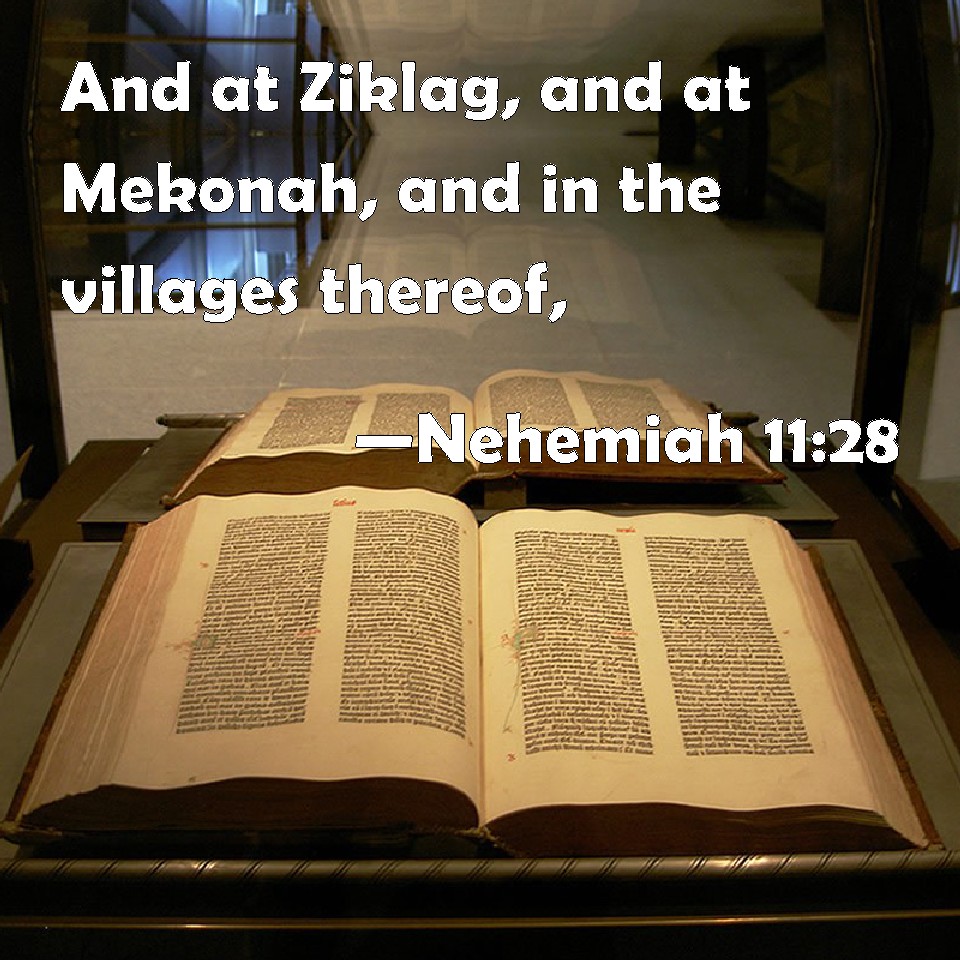 Choose a Background Nehemiah 11:28 And at Ziklag, and at Mekonah, and in the villages thereof, KJV: And at Ziklag, and at Mekonah, and in the villages thereof, DRB: And at Siceleg, and at Mochona, and in the villages thereof, DBT: and in Ziklag, and in Meconah and its dependent villages; ERV: and in Ziklag, and in Meconah and in the towns thereof; WBT: And at Ziklag, and at Mekonah, and in its villages, WEB: and in Ziklag, and in Meconah and in its towns, YLT: and in Ziklag, and in Mekonah and in its small towns,Links Nehemiah 11:28 NIV • Nehemiah 11:28 NLT • Nehemiah 11:28 ESV • Nehemiah 11:28 NASB • Nehemiah 11:28 KJV • Nehemiah 11:28 Interlinear • Nehemiah 11:28 Commentaries • Nehemiah 11:28 Parallel Texts • Nehemiah 11:28 Bible Apps • Nehemiah 11:28 Parallel • Bible Hub |