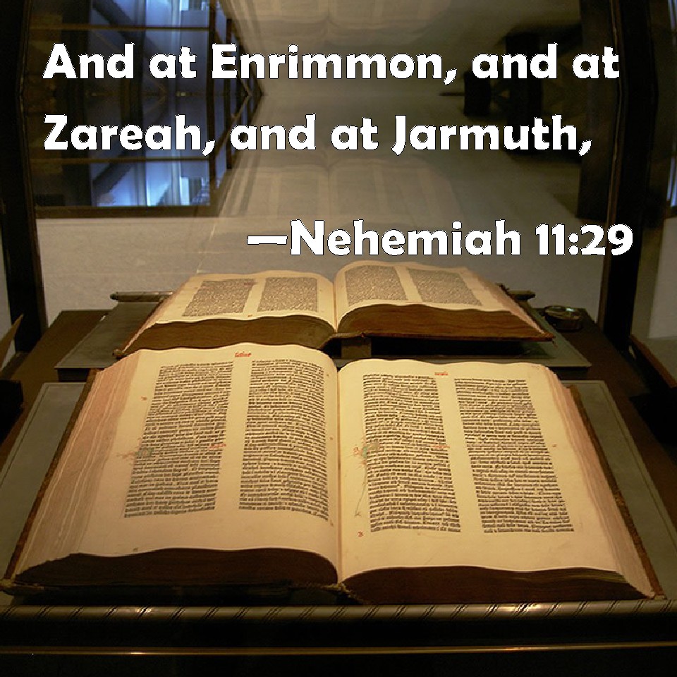 Choose a Background Nehemiah 11:29 And at Enrimmon, and at Zareah, and at Jarmuth, KJV: And at Enrimmon, and at Zareah, and at Jarmuth, DRB: And at Remmon, and at Saraa, and at Jerimuth, DBT: and in En-Rimmon, and in Zorah, and in Jarmuth, ERV: and in En-rimmon, and in Zorah, and in Jarmuth; WBT: And at En-rimmon, and at Zareah, and at Jarmuth, WEB: and in En Rimmon, and in Zorah, and in Jarmuth, YLT: and En-Rimmon, and in Zareah, and in Jarmuth,Links Nehemiah 11:29 NIV • Nehemiah 11:29 NLT • Nehemiah 11:29 ESV • Nehemiah 11:29 NASB • Nehemiah 11:29 KJV • Nehemiah 11:29 Interlinear • Nehemiah 11:29 Commentaries • Nehemiah 11:29 Parallel Texts • Nehemiah 11:29 Bible Apps • Nehemiah 11:29 Parallel • Bible Hub |