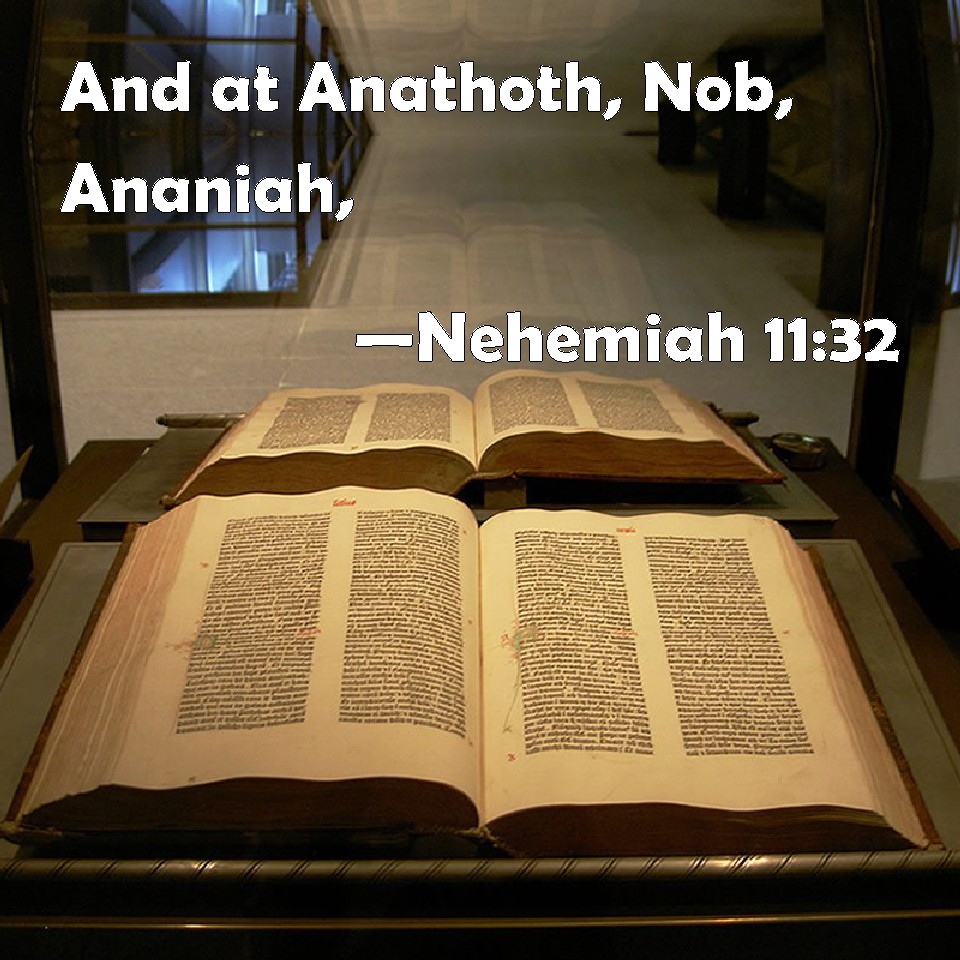 Choose a Background Nehemiah 11:32 And at Anathoth, Nob, Ananiah, KJV: And at Anathoth, Nob, Ananiah, DRB: At Anathoth, Nob, Anania, DBT: in Anathoth, Nob, Ananiah, ERV: at Anathoth, Nob, Ananiah; WBT: And at Anathoth, Nob, Ananiah, WEB: at Anathoth, Nob, Ananiah, YLT: Anathoth, Nob, Ananiah,Links Nehemiah 11:32 NIV • Nehemiah 11:32 NLT • Nehemiah 11:32 ESV • Nehemiah 11:32 NASB • Nehemiah 11:32 KJV • Nehemiah 11:32 Interlinear • Nehemiah 11:32 Commentaries • Nehemiah 11:32 Parallel Texts • Nehemiah 11:32 Bible Apps • Nehemiah 11:32 Parallel • Bible Hub |