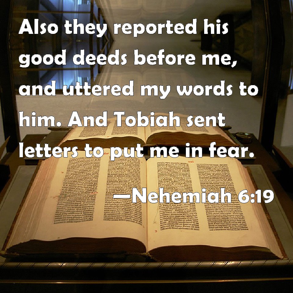 Nehemiah 6:19 Also they reported his good deeds before me, and uttered my words to him. And Tobiah sent letters to put me in fear.