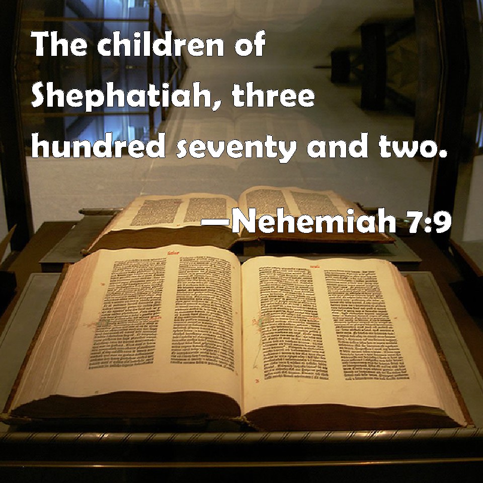 Nehemiah 7:9 The children of Shephatiah, three hundred seventy and two.
