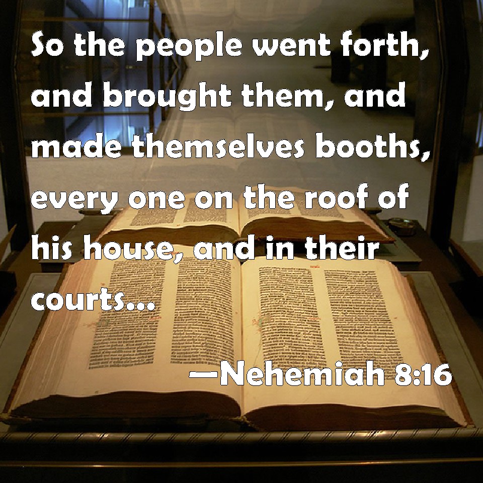 ERV:  So the people went forth, and brought them, and made themselves booths, every one upon the roof of his house, and in their courts, and in the courts of the house of God, and in the broad place of the water gate, and in the broad place of the gate of Ephraim.