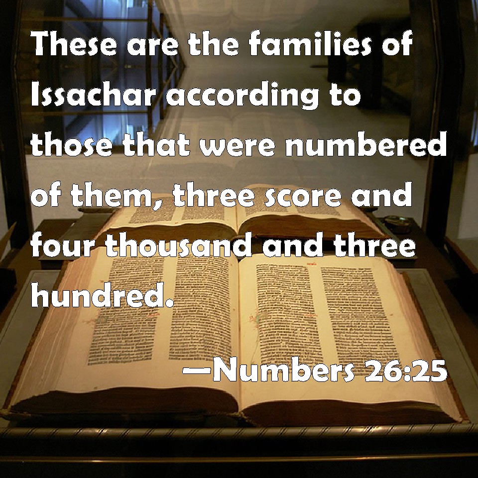 Numbers 26:25 These are the families of Issachar according to those that were numbered of them, three score and four thousand and three hundred.