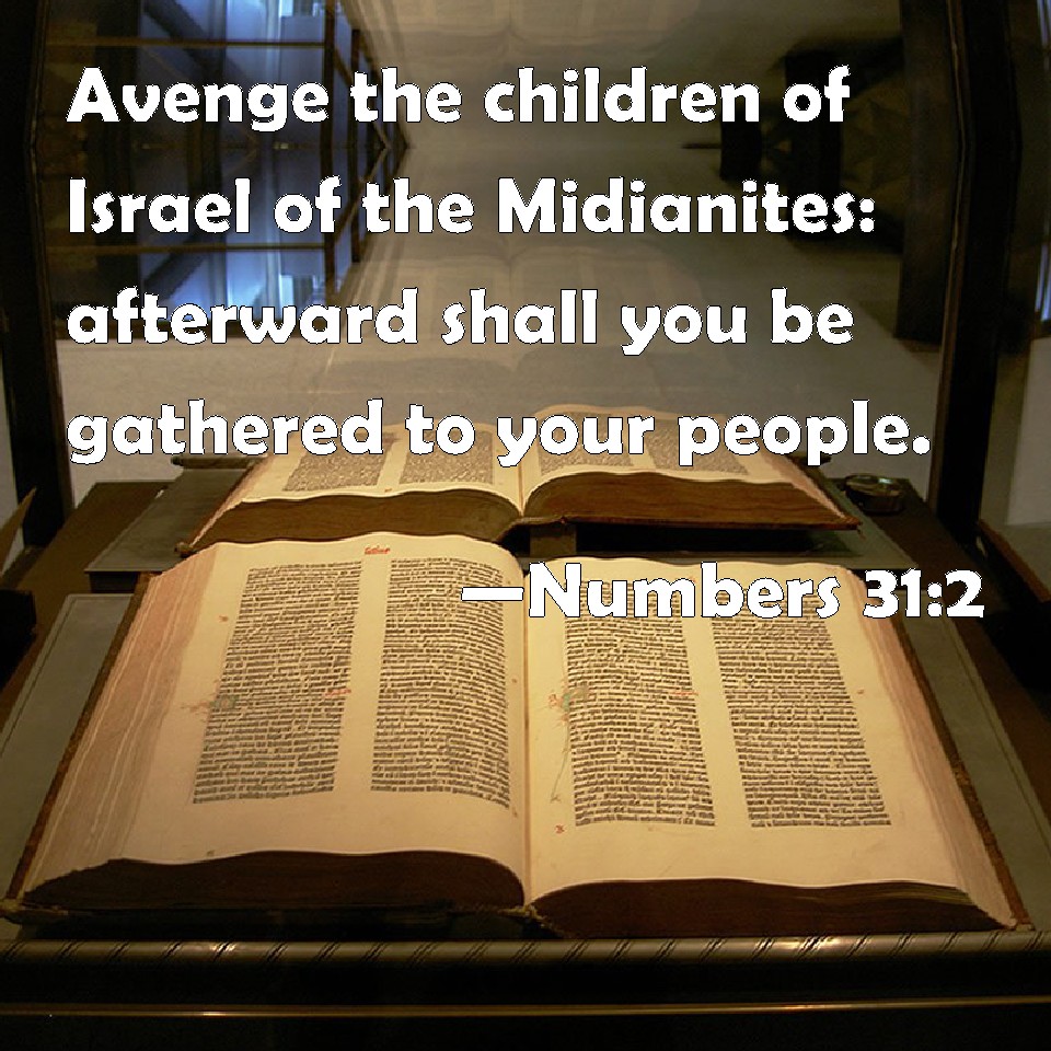 Numbers 31:2 Avenge the children of Israel of the Midianites: afterward shall you be gathered to your people.