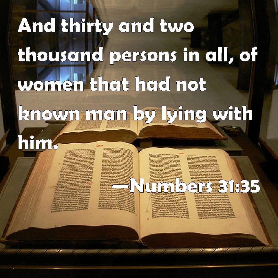 Numbers 31:35 And thirty and two thousand persons in all, of women that had not known man by lying with him.